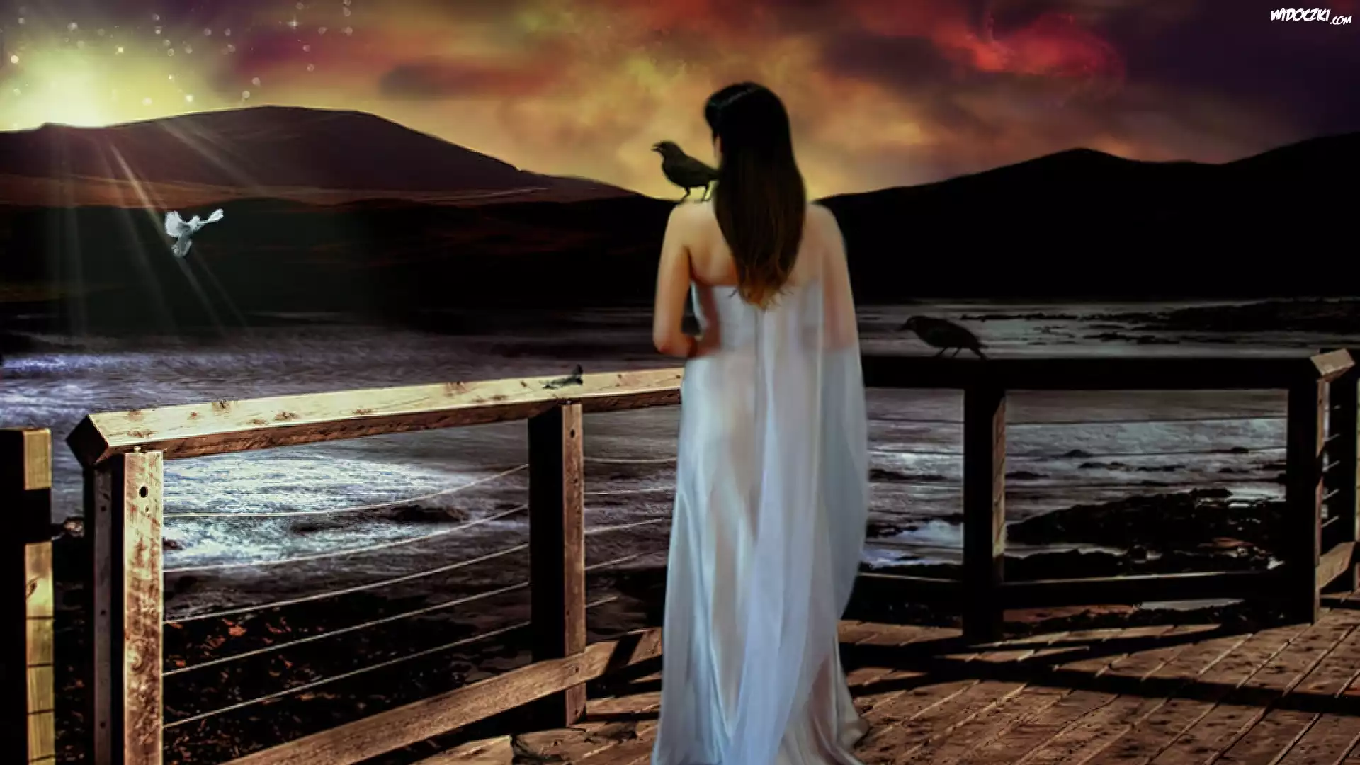 Zdjęcia, Grafika, Fantasy, Kobieta, Pomost, Morze