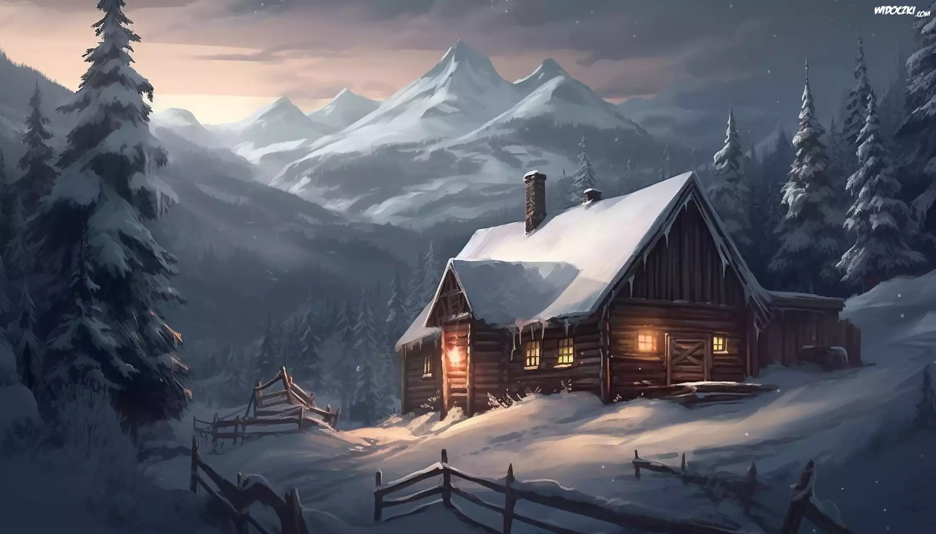 Zima, Dom, Góry, Grafika