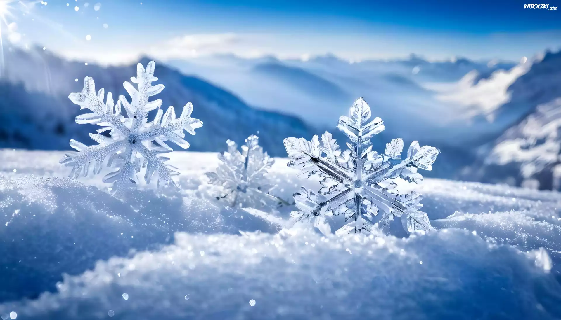 Zdjęcia, Zima, Śnieżynki, Śnieg, Grafika