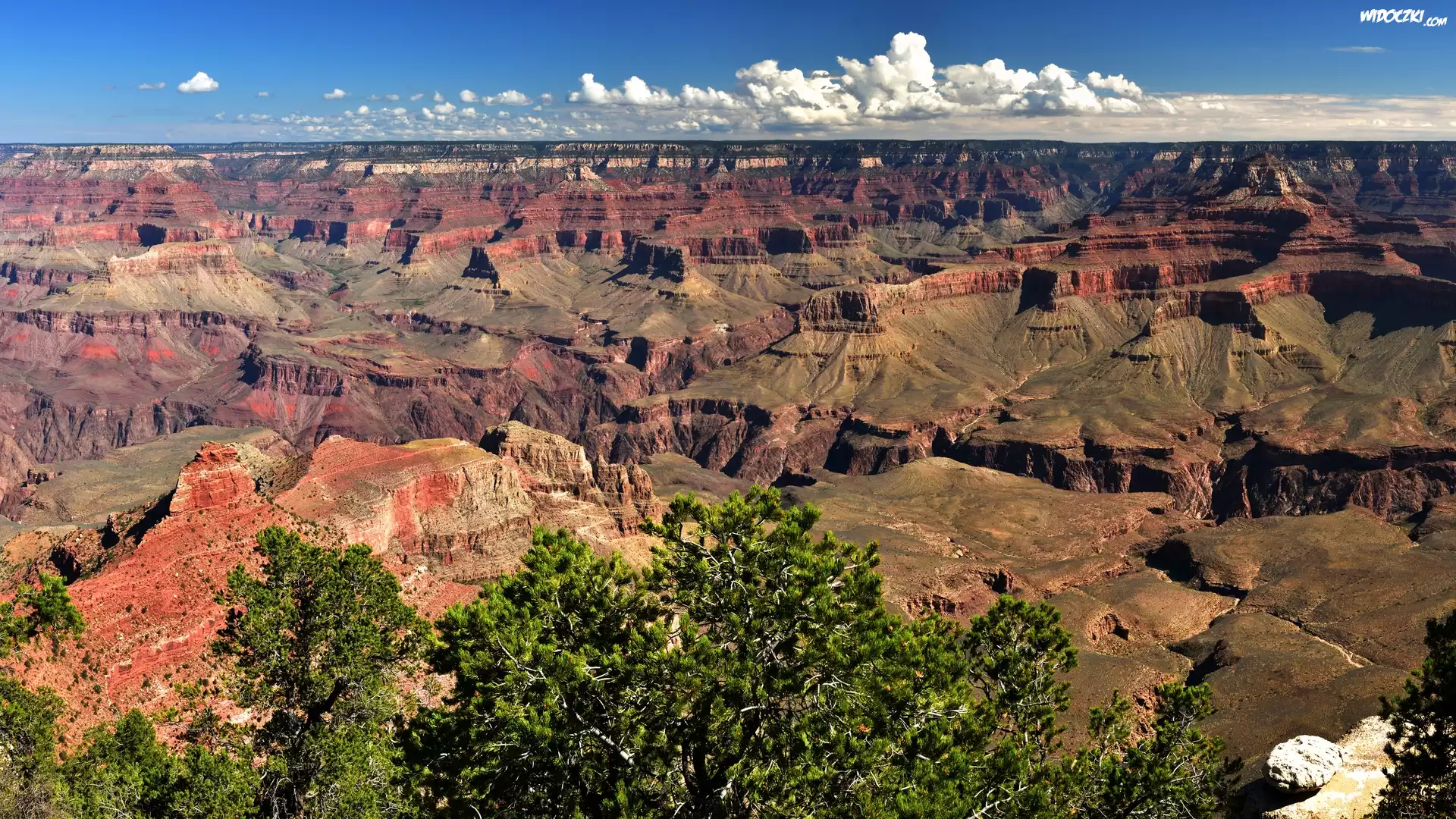 Stany Zjednoczone, Arizona, Park Narodowy Wielkiego Kanionu, Grand Canyon National Park, Kanion, Góry, Skały, Drzewa |