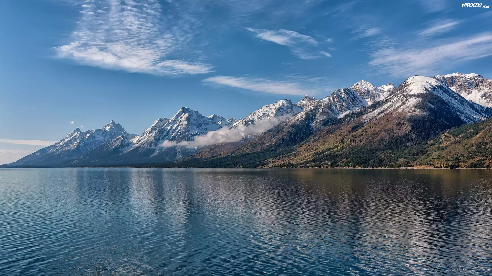 Zdjęcia, Góry, Jezioro, Jackson Lake, Park Narodowy Grand Teton, Wyoming, Stany Zjednoczone