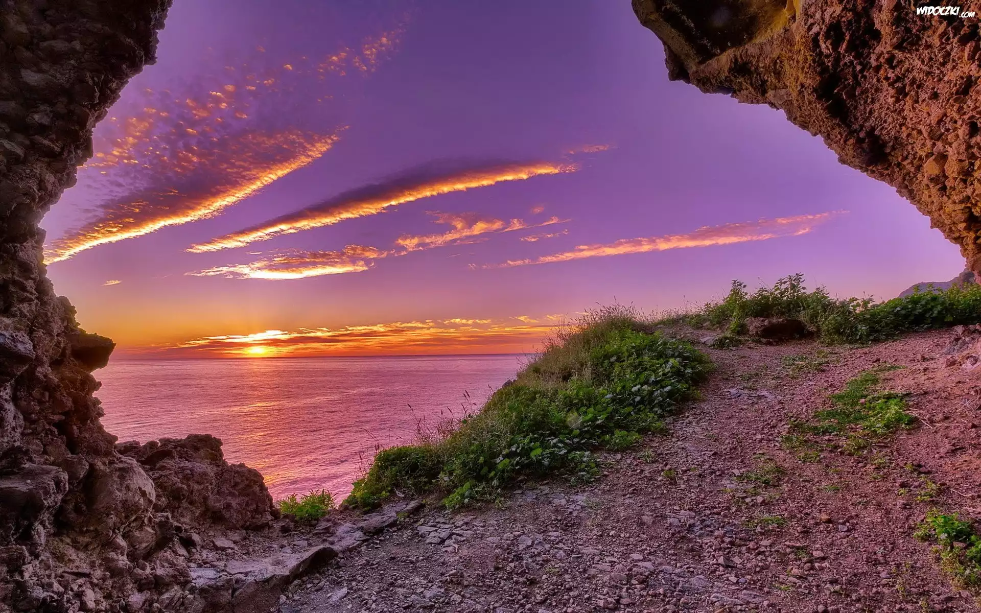 Zdjęcia, Grota, Morze, Zachód, Słońca