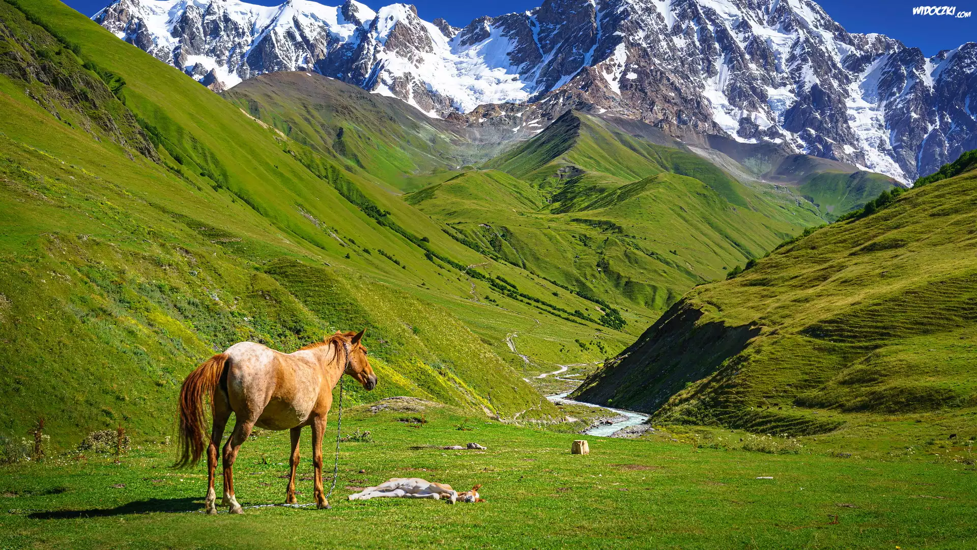 Zdjęcia, Góry Swaneckie, Wąwóz, Rzeka Enguri, Konie, Ushguli, Swanetia, Gruzja