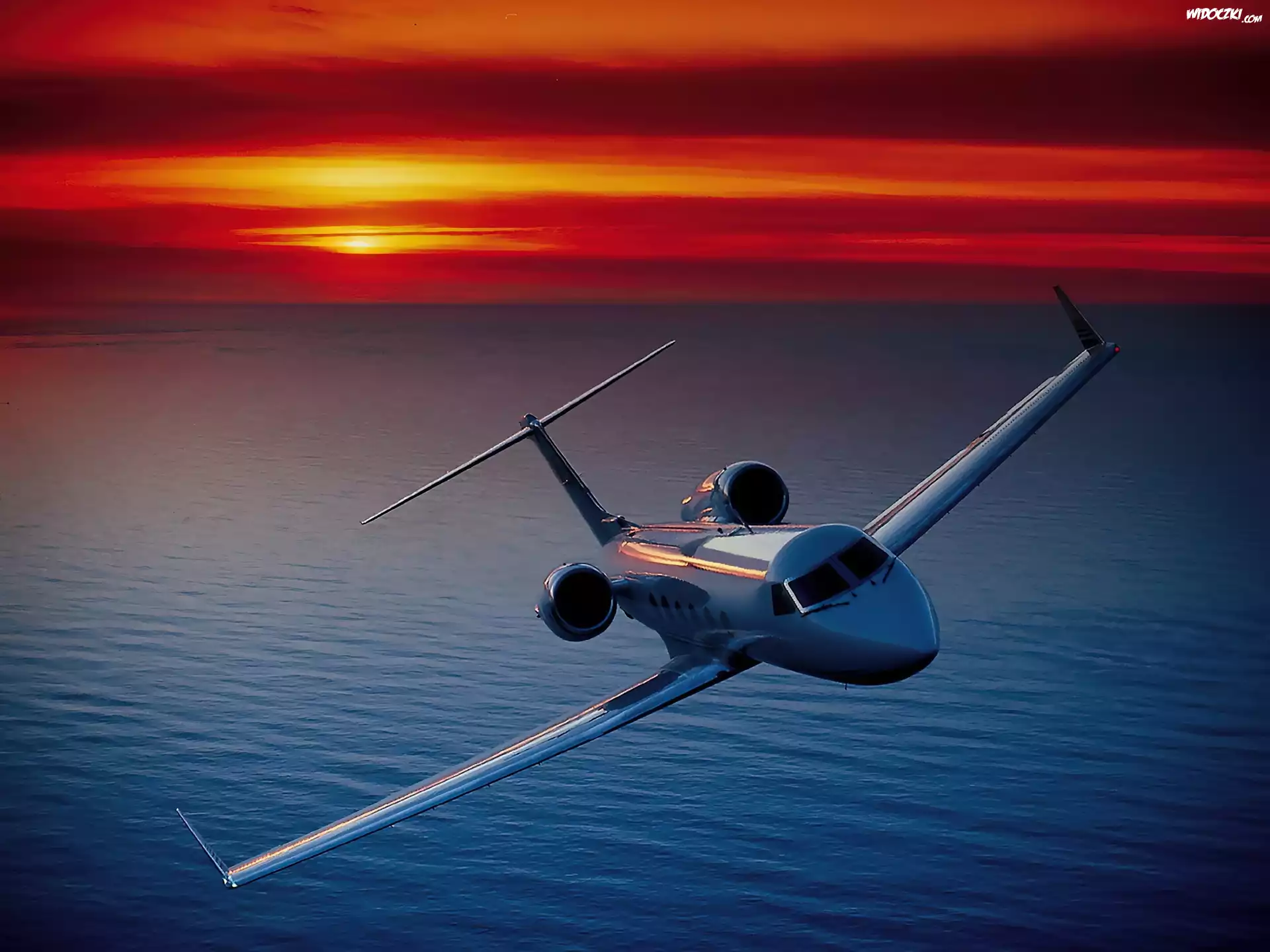 Zdjęcia, GulfStream G-300, Morze, Zachód, Słońca