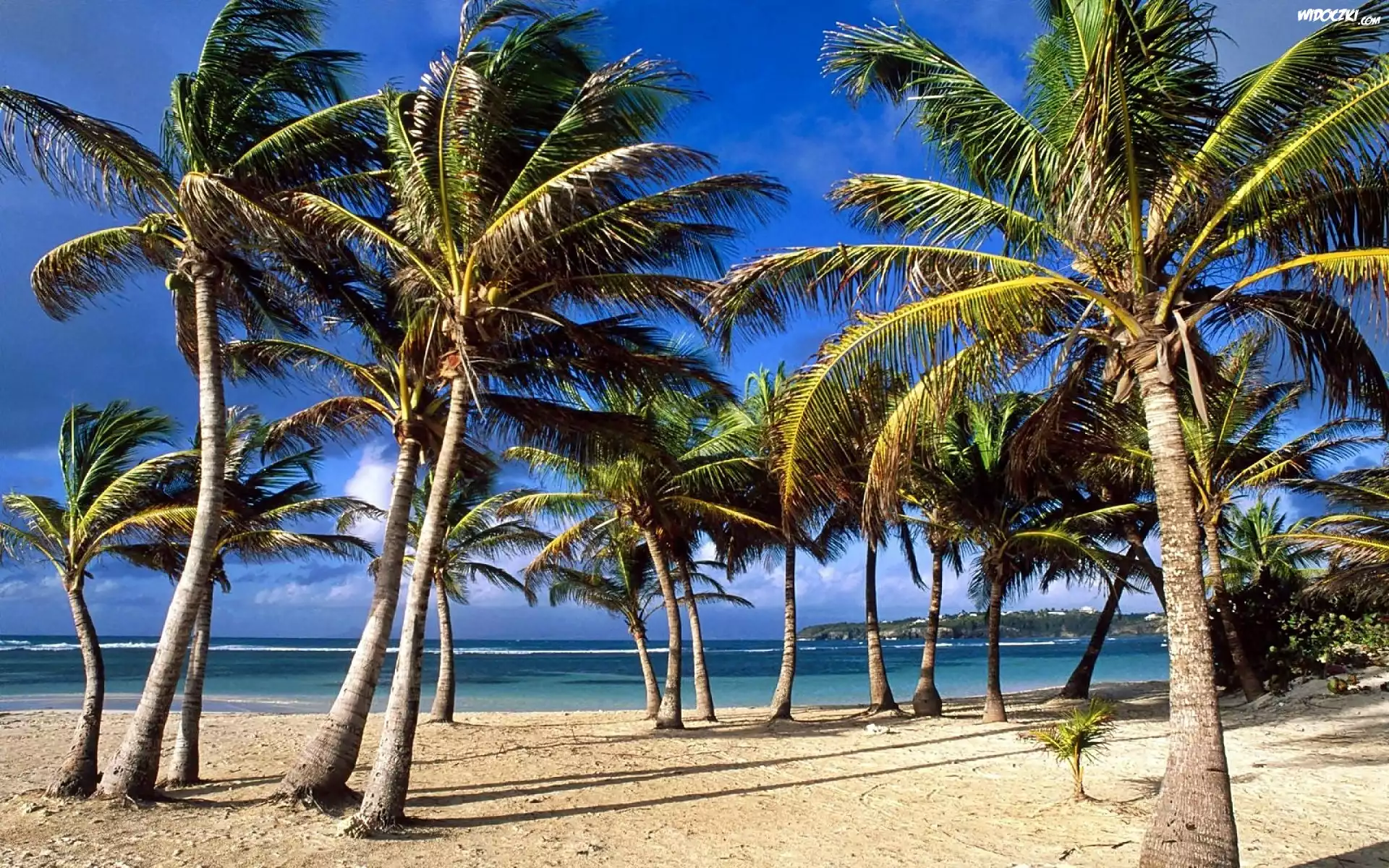 Gwadelupa, Wyspa, Morze, Plaża, Palmy