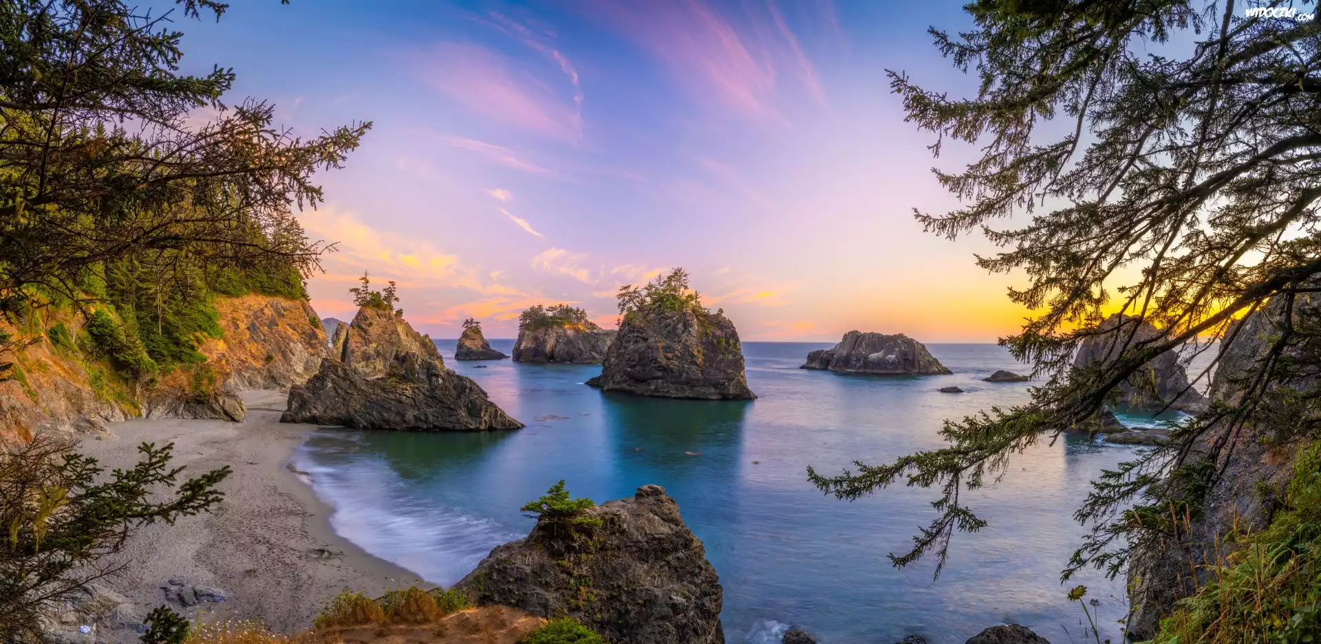 Skały, Morze, Drzewa, Wybrzeże, Park stanowy, Samuel H Boardman State Scenic Corridor, Oregon, Stany Zjednoczone |