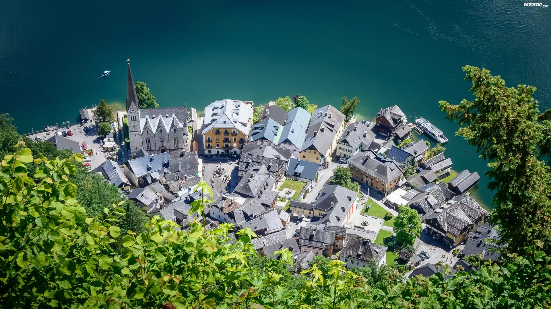 Zdjęcia, Hallstatt, Kościół, Domy, Jezioro Hallstattersee, Austria