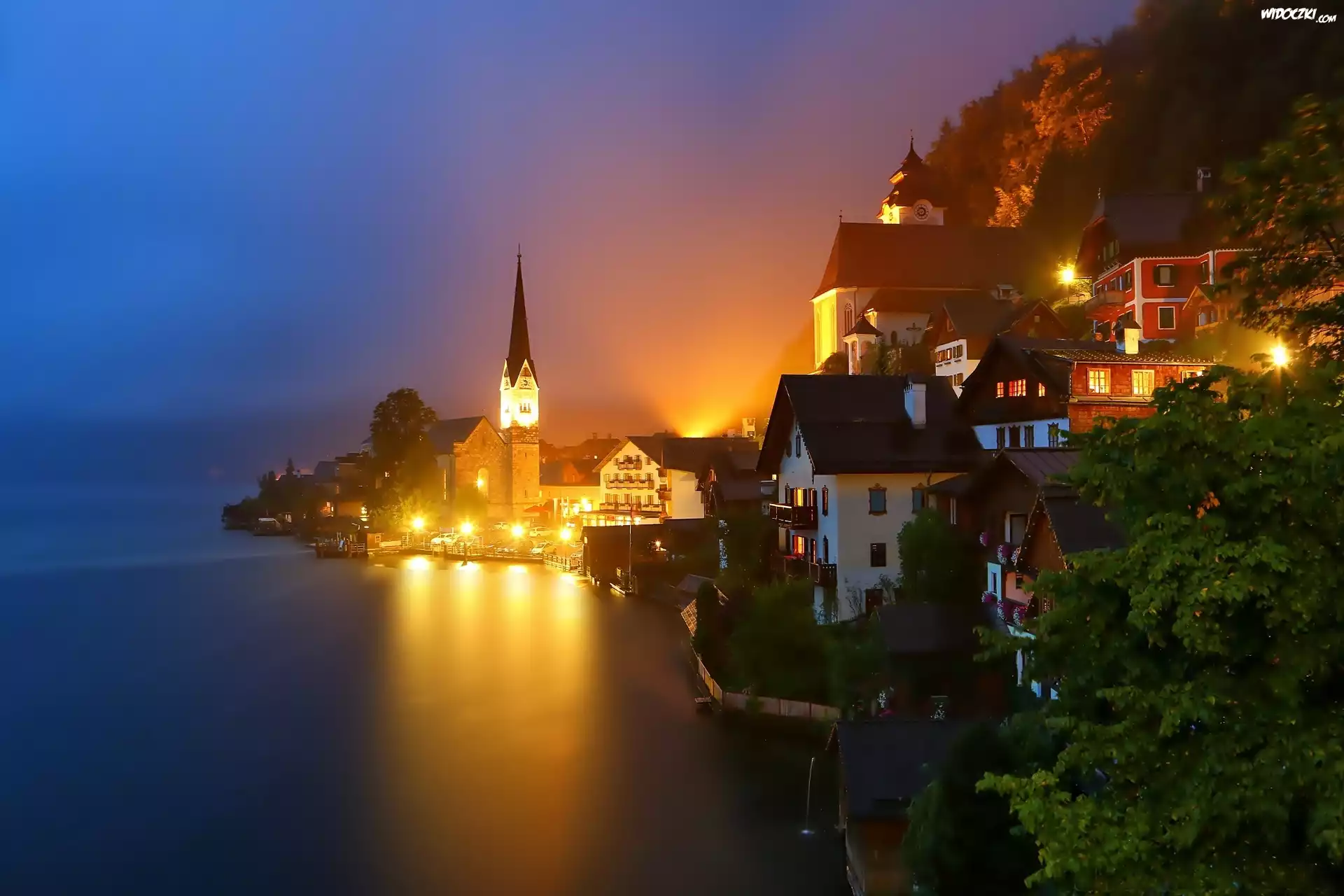 Zdjęcia, Hallstatt, Austria, Nocą, Jezioro