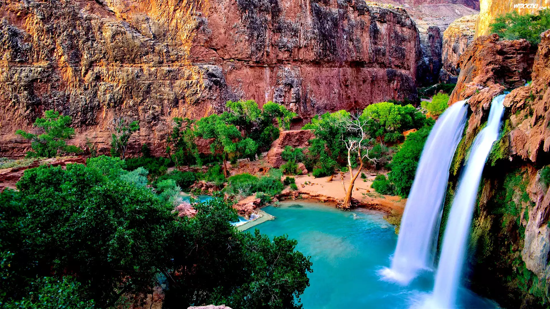Zdjęcia, Wodospad Havasu, Skały, Drzewa, Arizona, Stany Zjednoczone