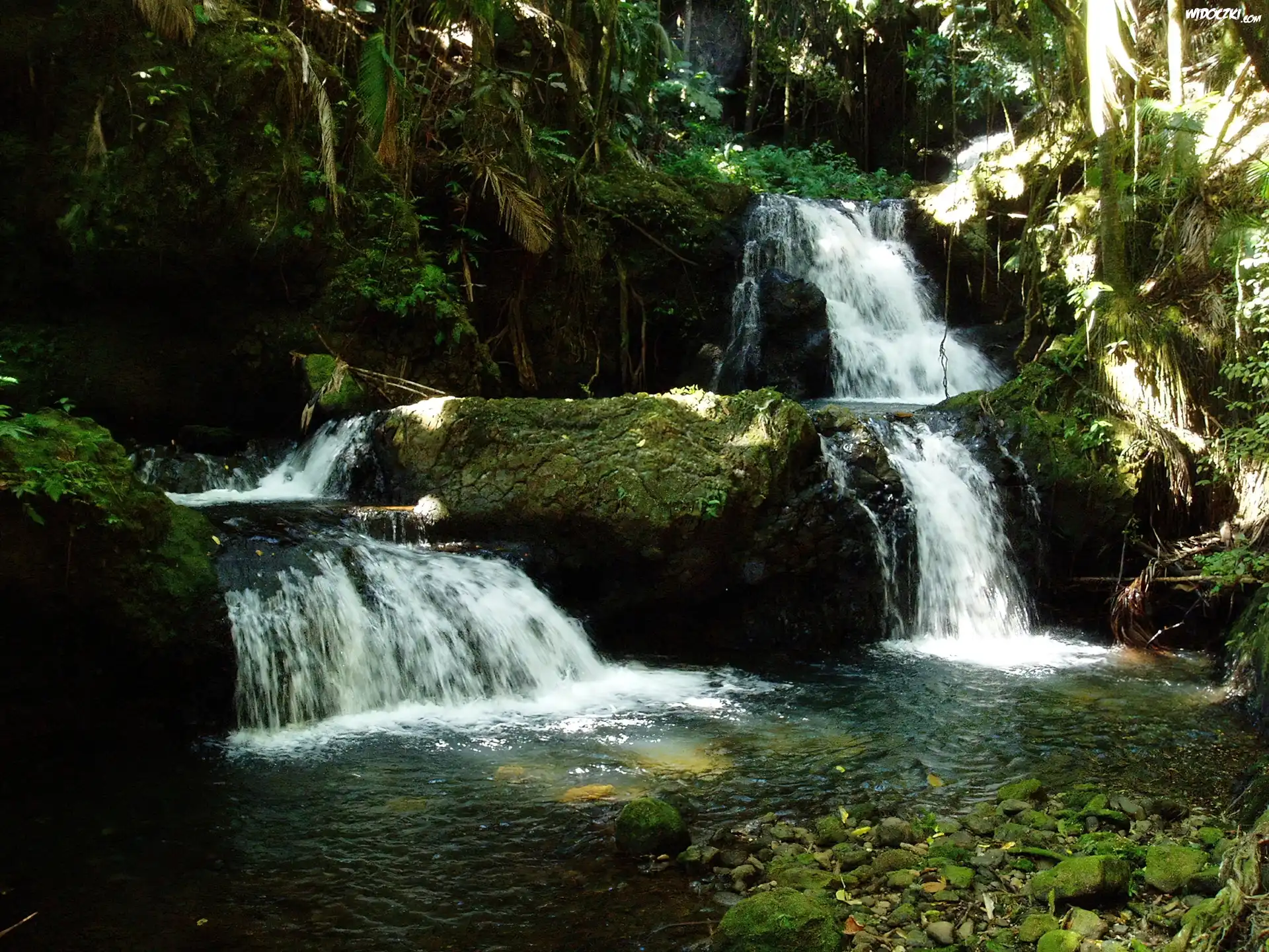 Zdj臋cia, Hawaje, Wodospad, Woda, Kamienie, Drzewa
