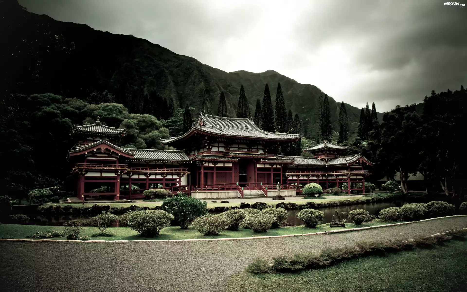 Hawaje, Góry, Domy, Krzewy, Drzewa