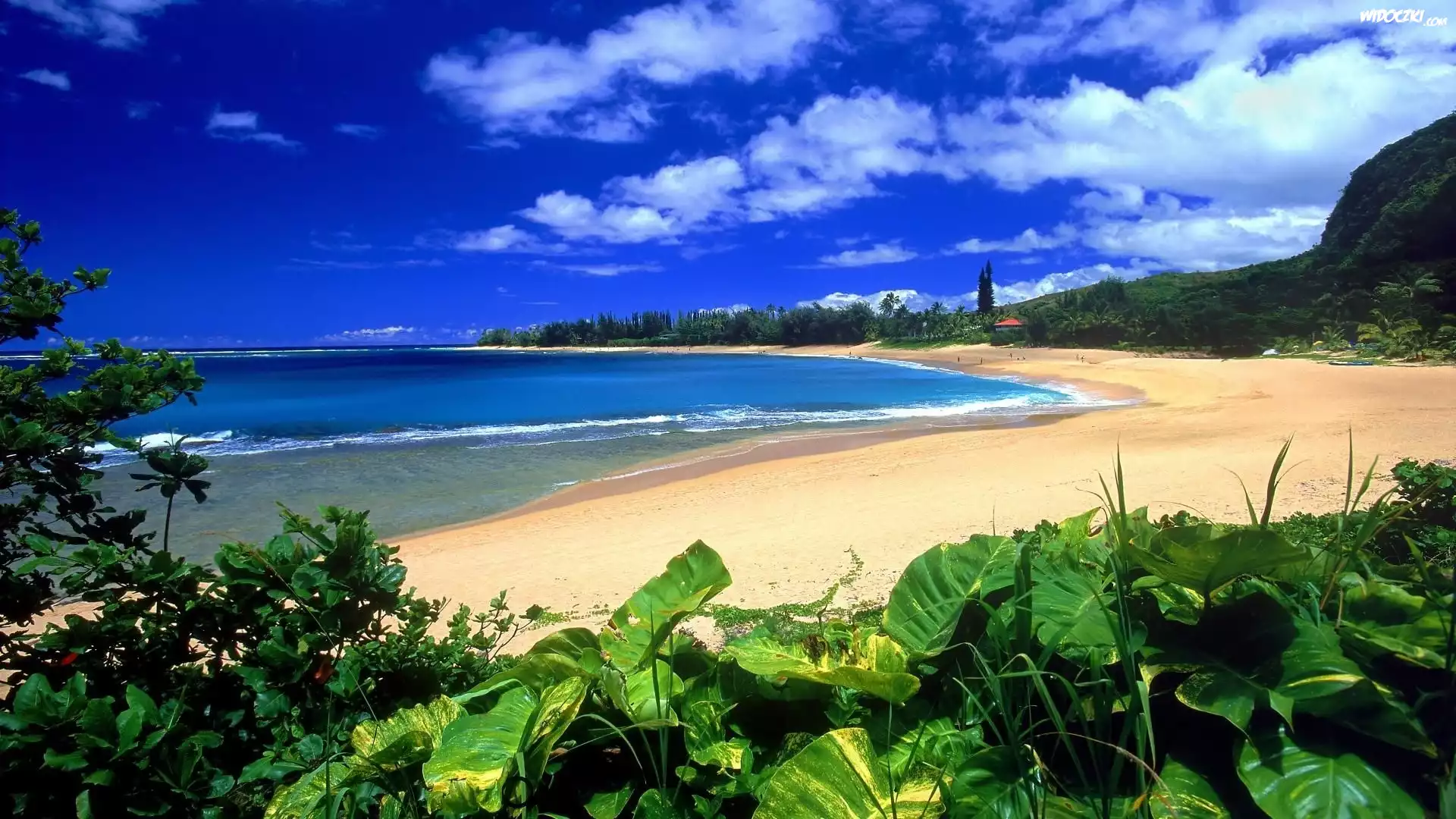Zdjęcia, Hawaje, Kauai, Piasek, Liście, Woda