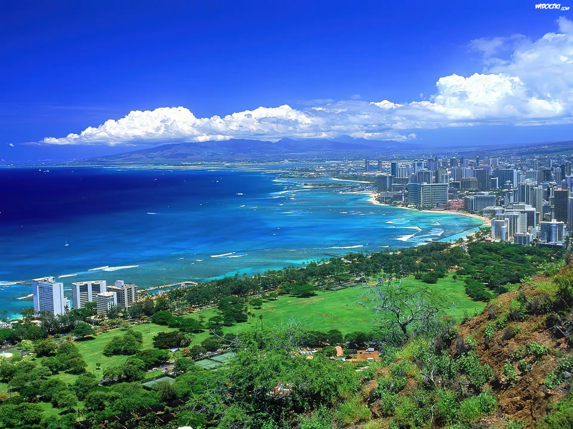Zdjęcia, Hawaje, Zielona, Roślinność, Ocean, Spokojny