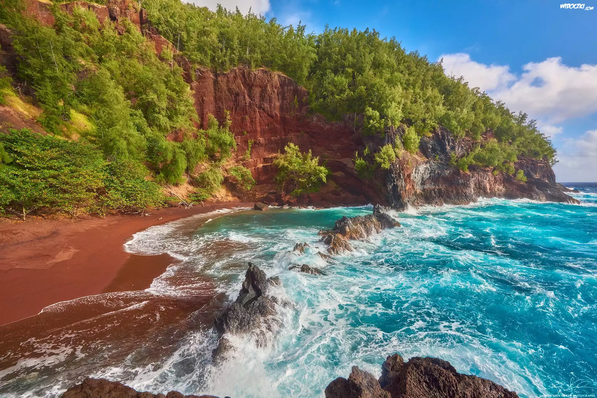 Hawaje, Wyspa Maui, Morze, Skały, Roślinność