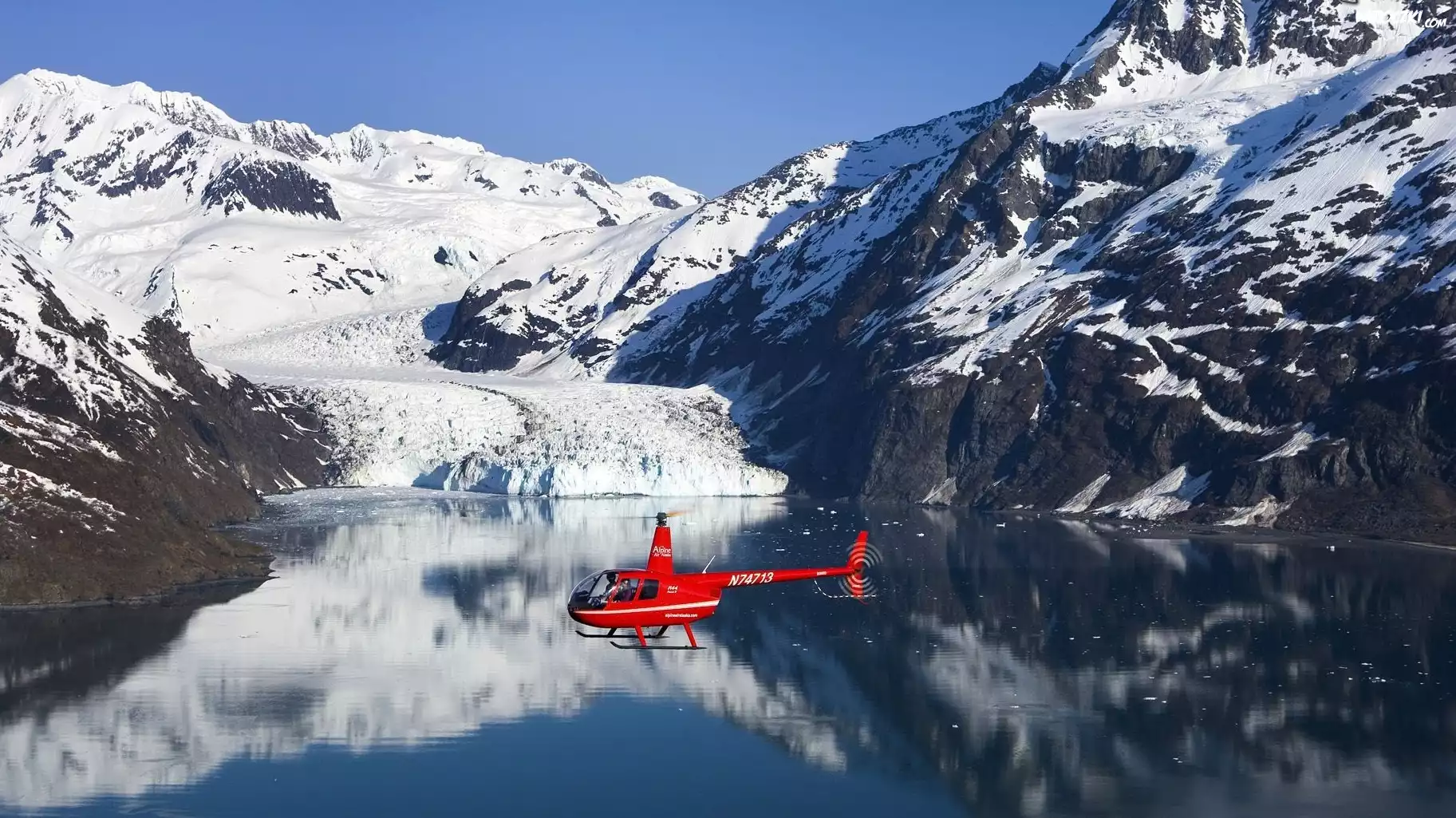Zdjęcia, Góry, Helikopter, Jezioro