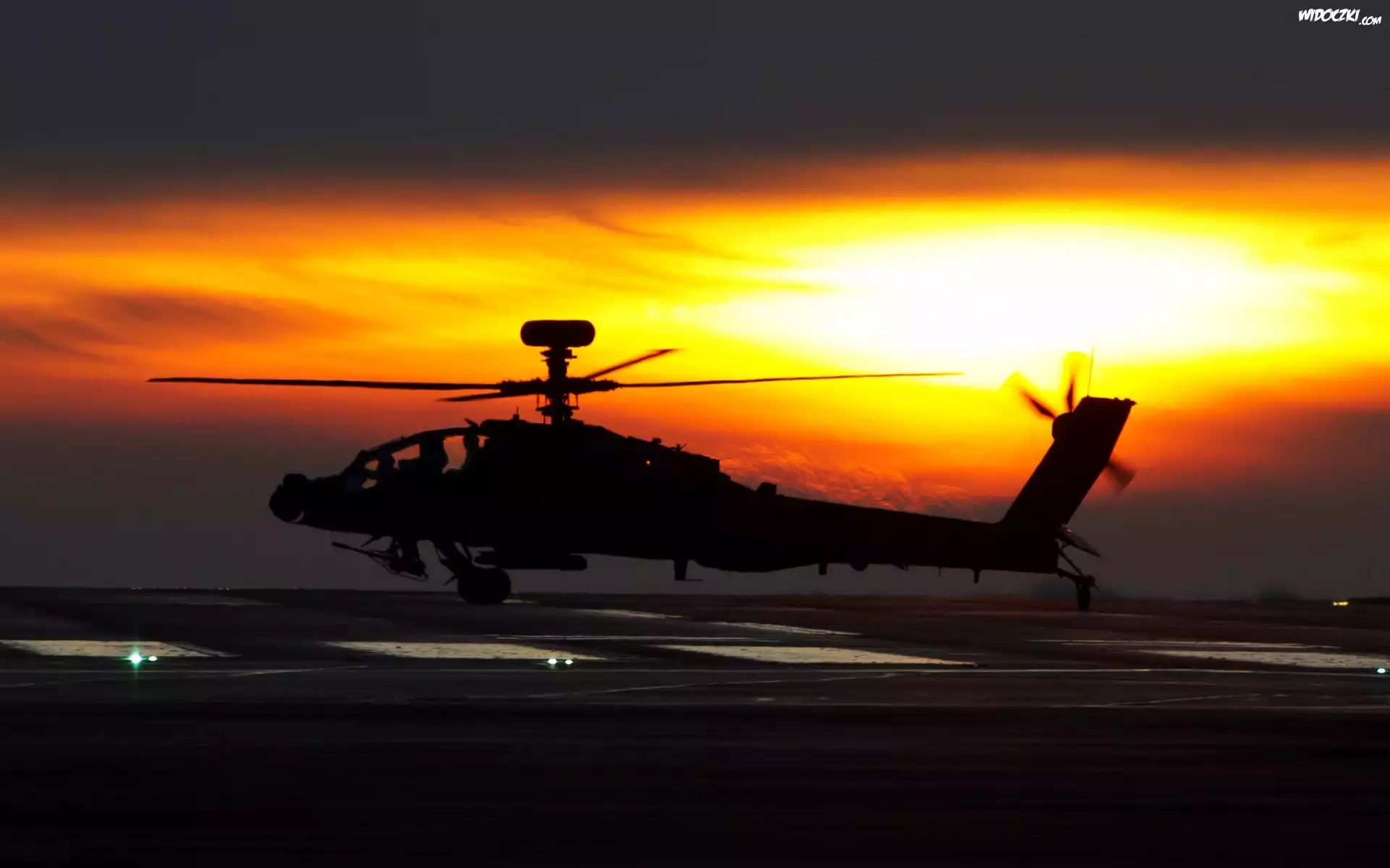 Zdjęcia, Helikopter, Lot, Chmury, Zachód, Słońca