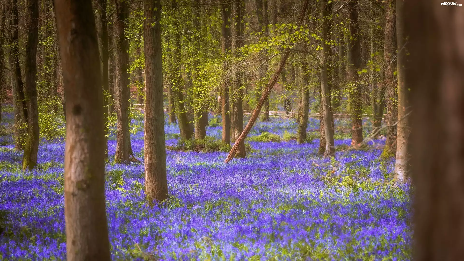 Zdjęcia, Kwiaty, Hiacyntowce, Drzewa, Las, Pnie