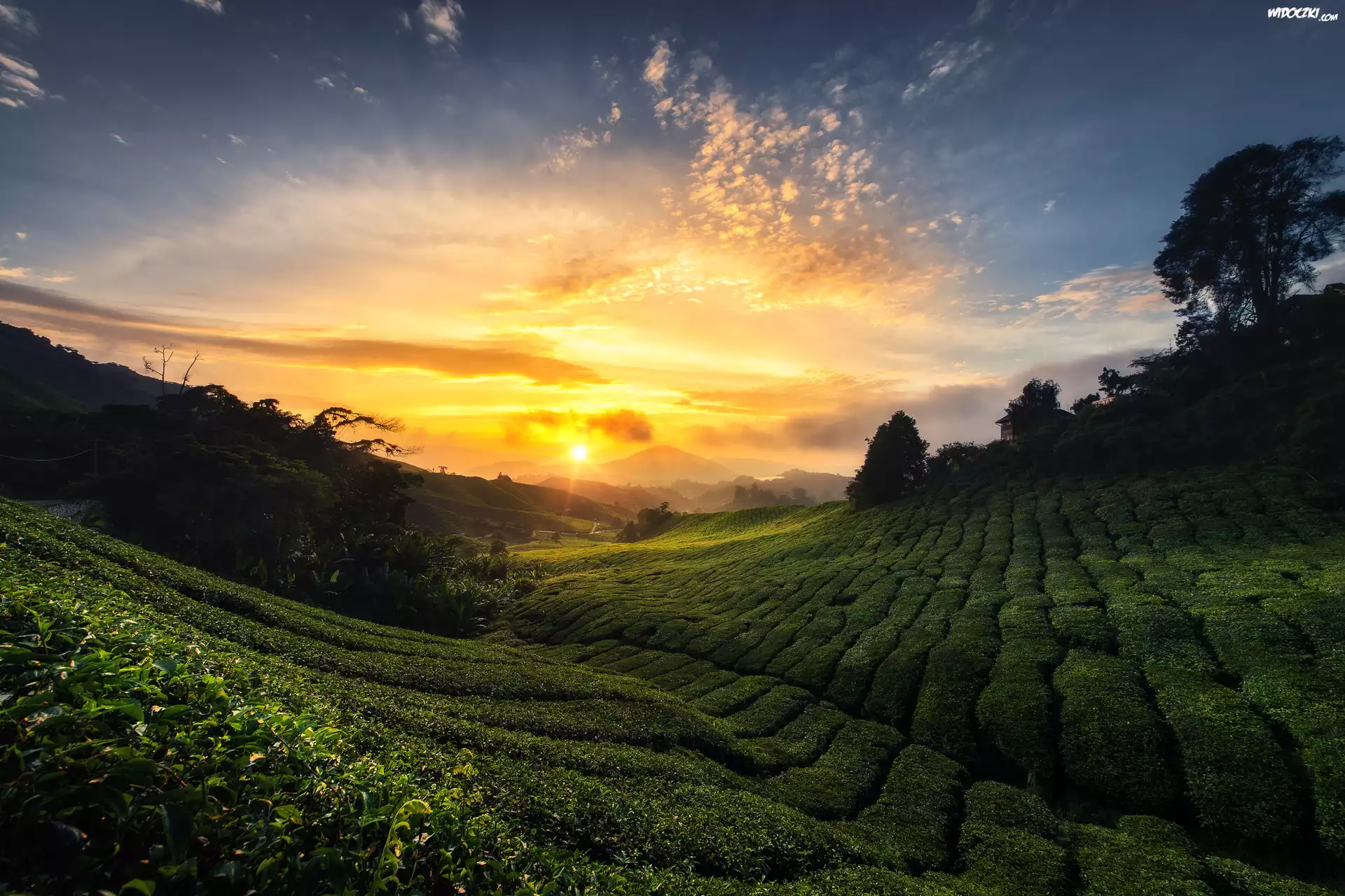 Zdjęcia, Cameron Highlands, Stan Pahang, Malezja, Plantacja, Wschód słońca