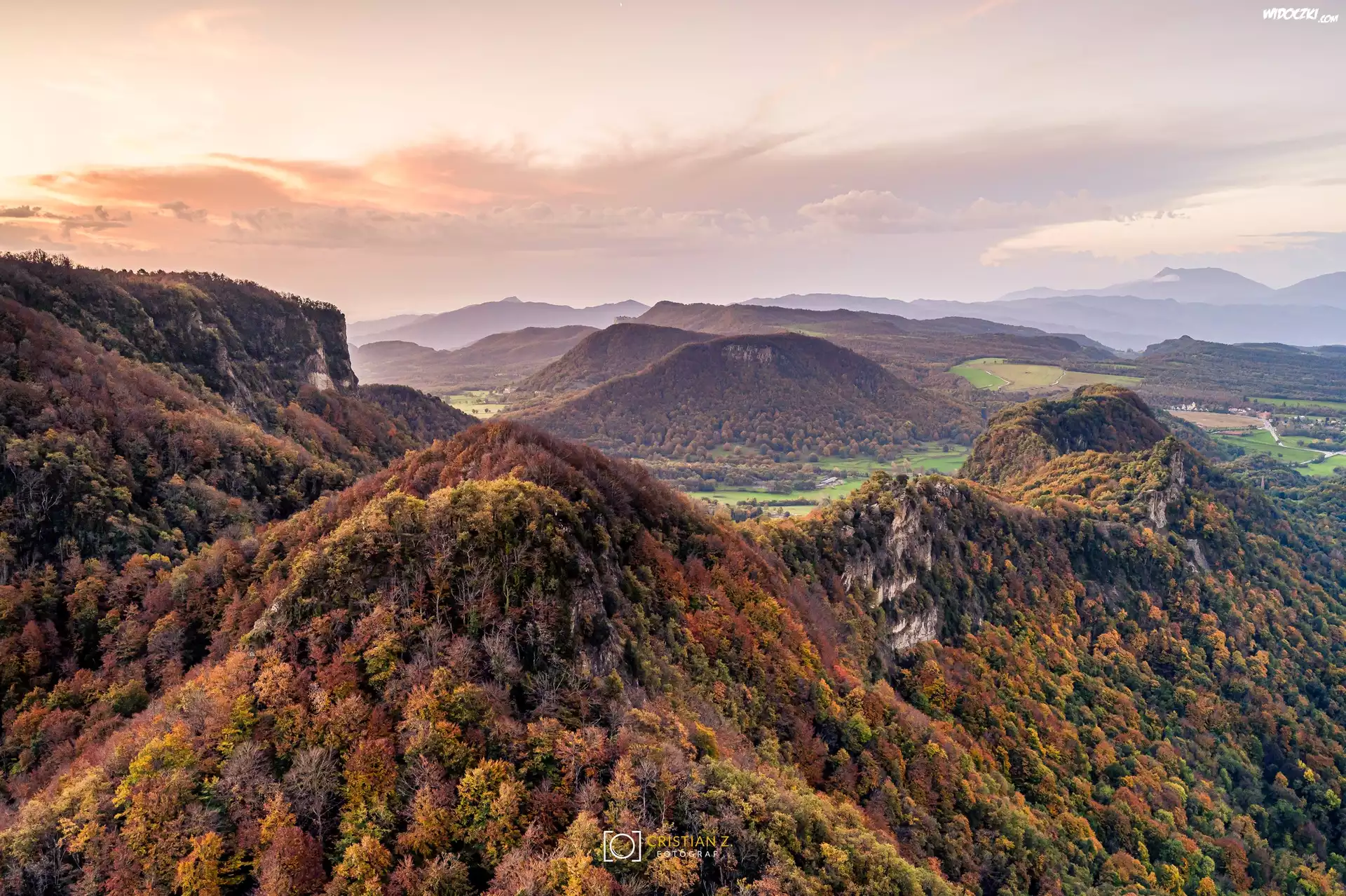 Zdjęcia, Hiszpania, Katalonia, Góry, Serra de Cabrera, Lasy, Pożółkłe, Drzewa, Jesień