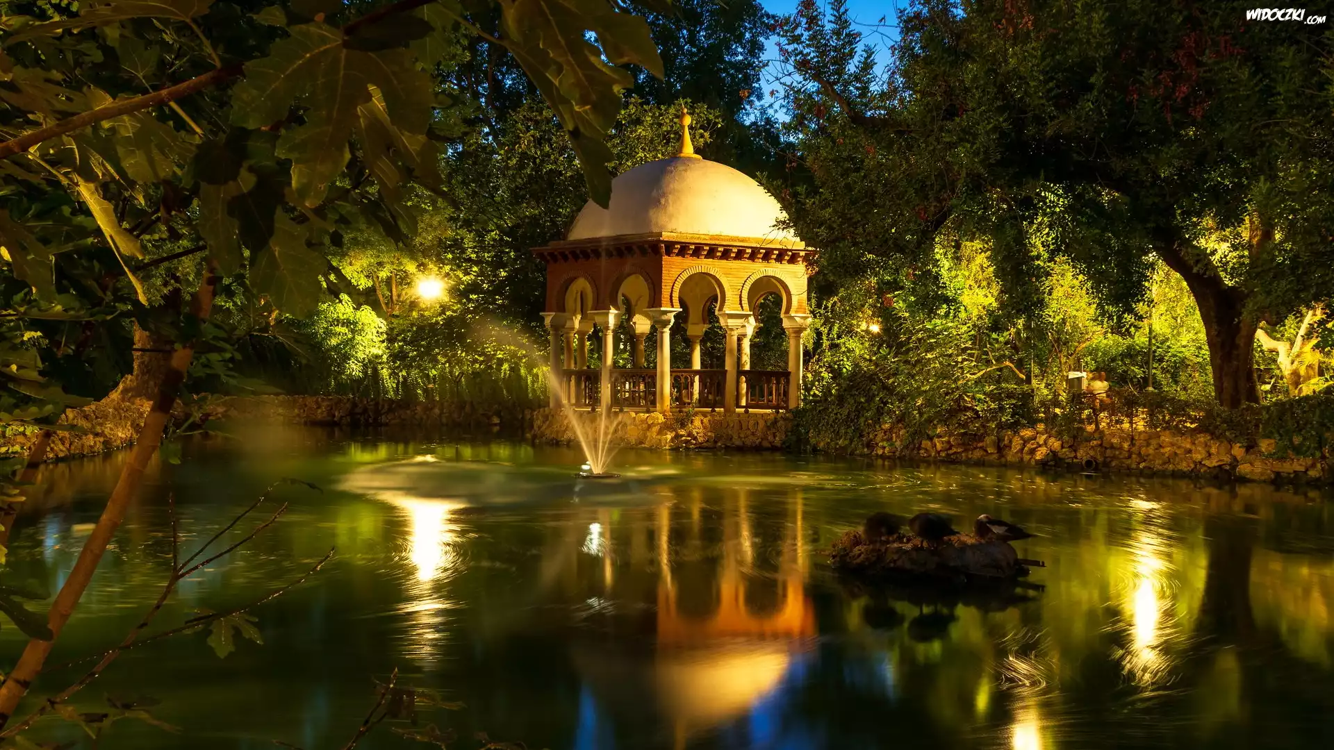 Zdj臋cia, Altana, Staw, Fontanna, Drzewa, Park Marii Luizy, Sewilla, Hiszpania