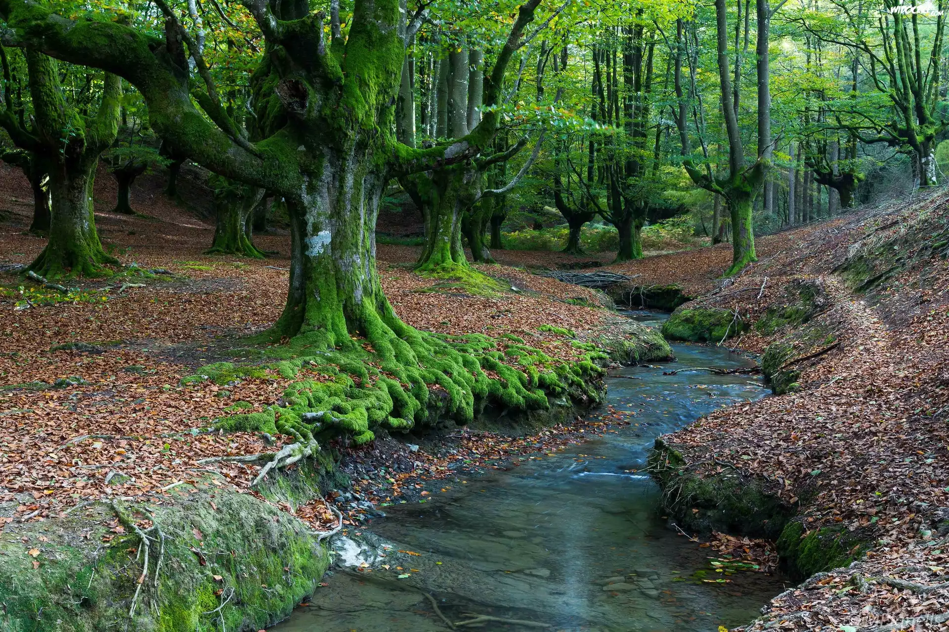 Zdjęcia, Hiszpania, Las, Rzeczka, Mech