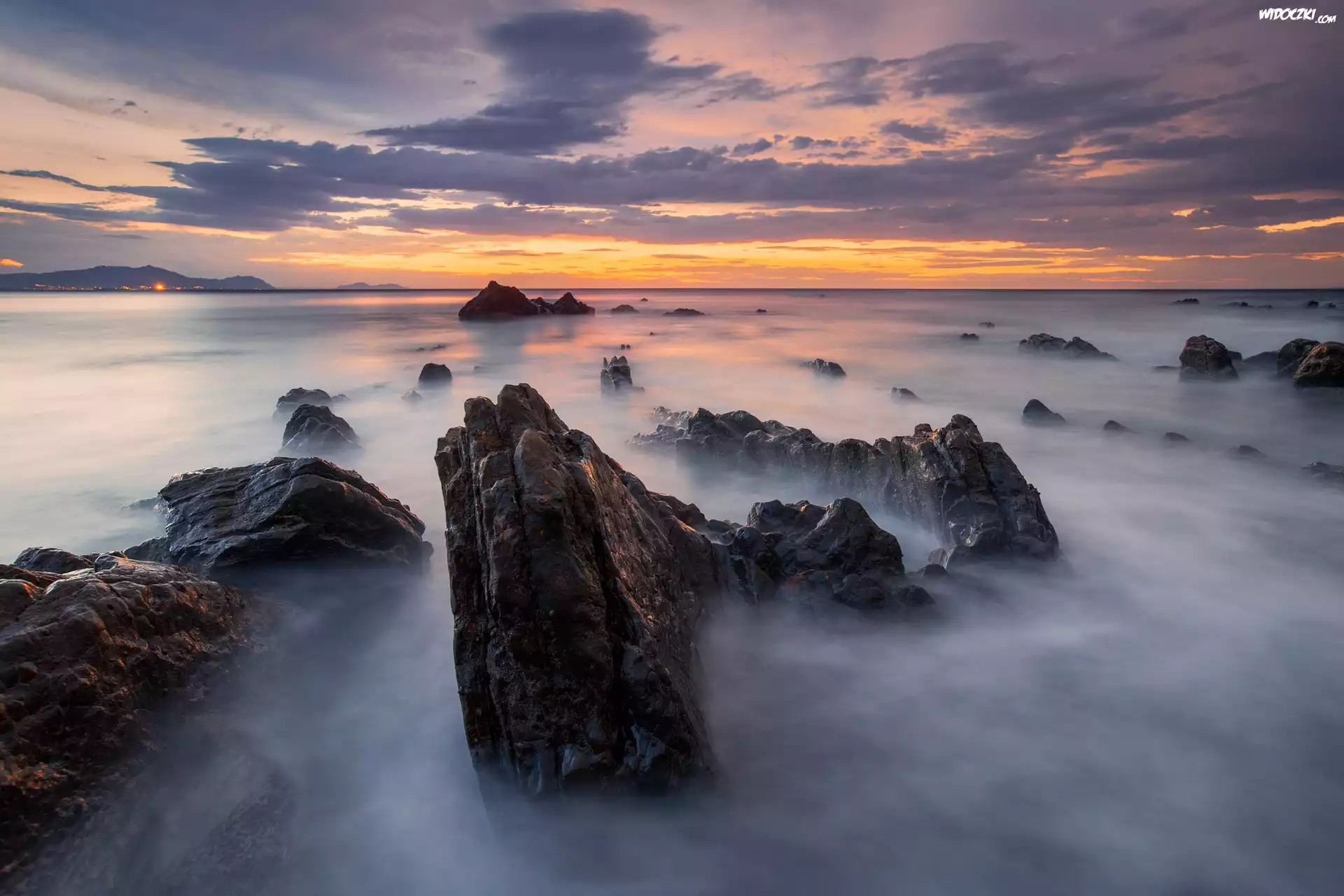 Zdjęcia, Hiszpania, Zatoka Biskajska, Morze, Skały, Mgła