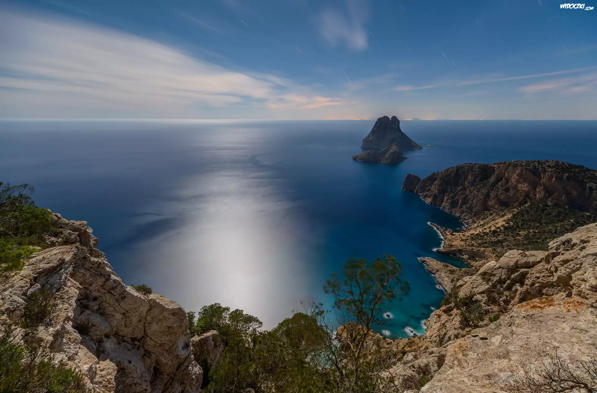 Zdjęcia, Hiszpania, Ibiza, Morze Balearskie, Wybrzeże, Wzgórza