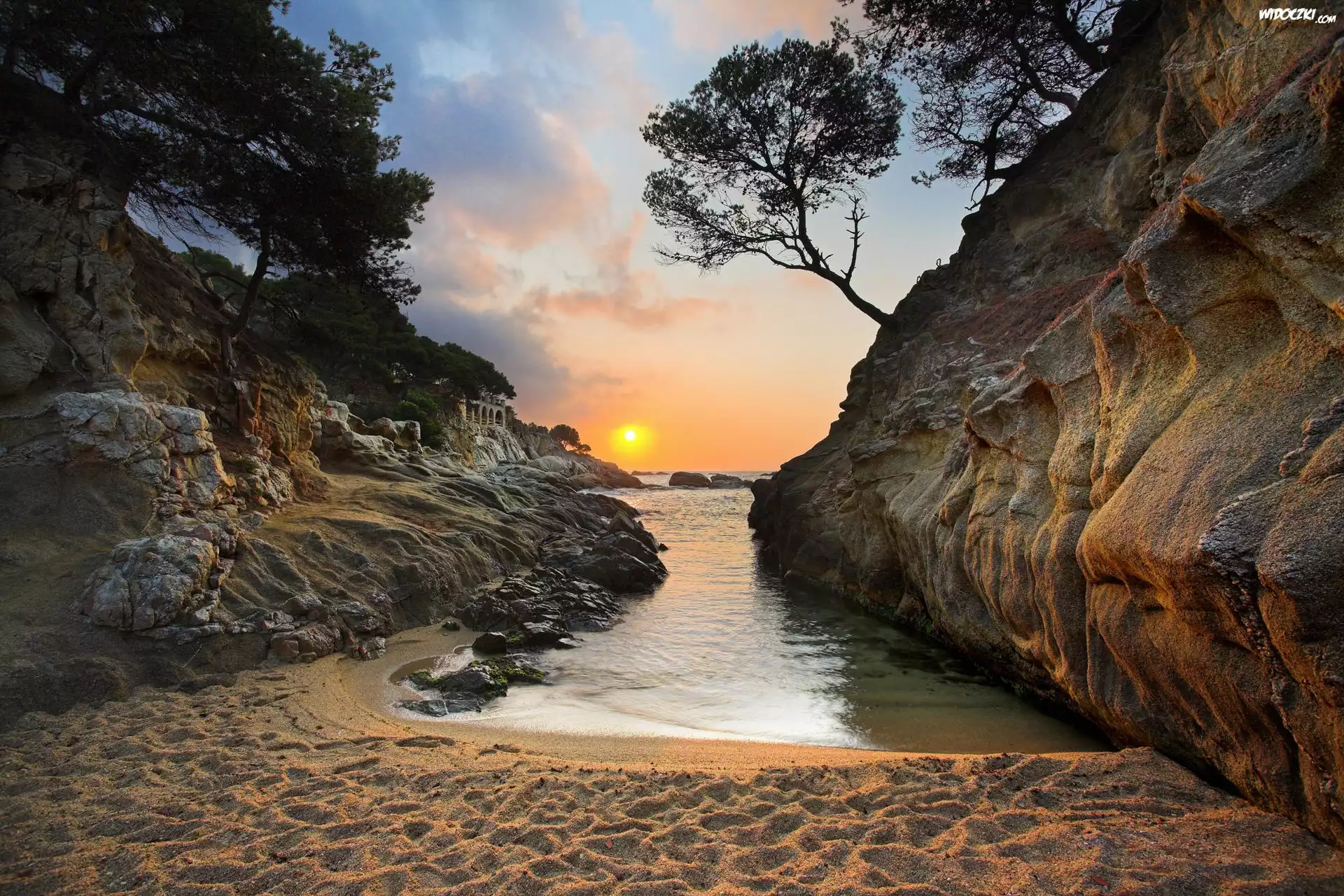 Zdjęcia, Hiszpania, Costa Brava, Plaża, Zachód, Słońca