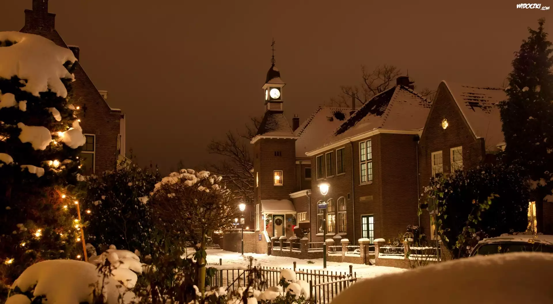 Zima, Hotel, Lansink, Hengelo, Holandia, Miasto nocÄ…
