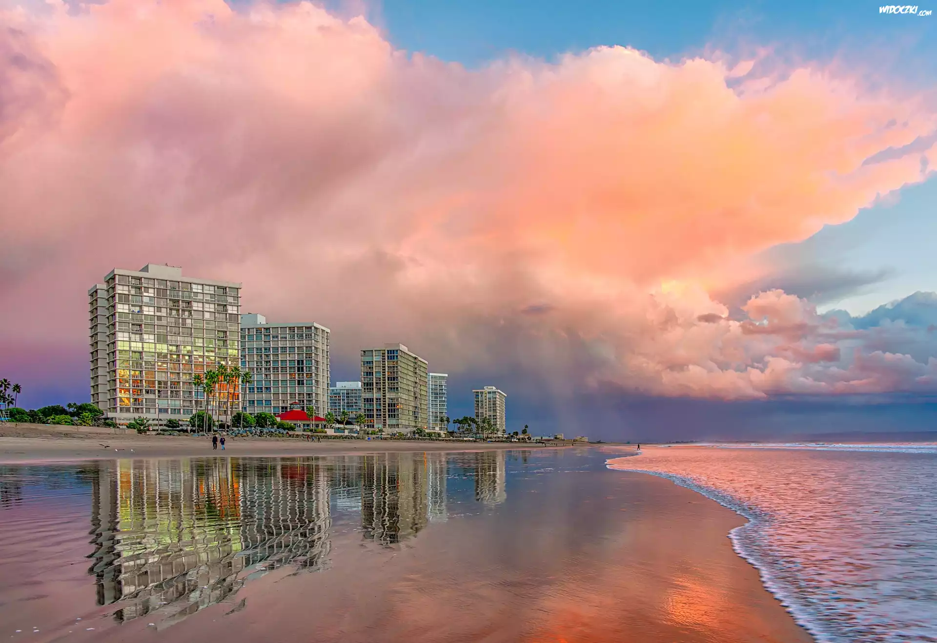 Zdjęcia, Hotele, Morze, Plaża, Chmury