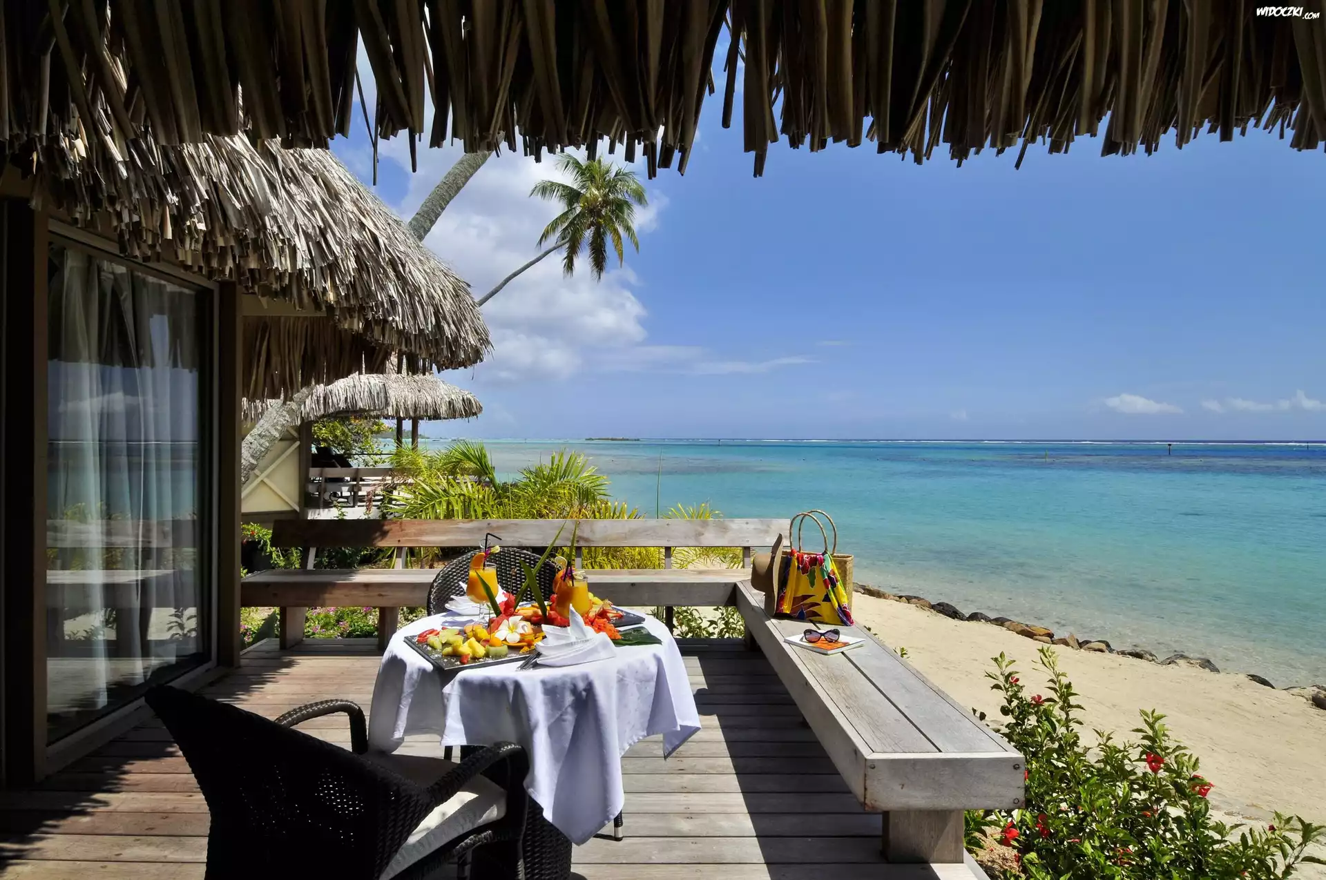 Hotelowy, Taras, Śniadanie, Plaża, Ocean, Tahiti