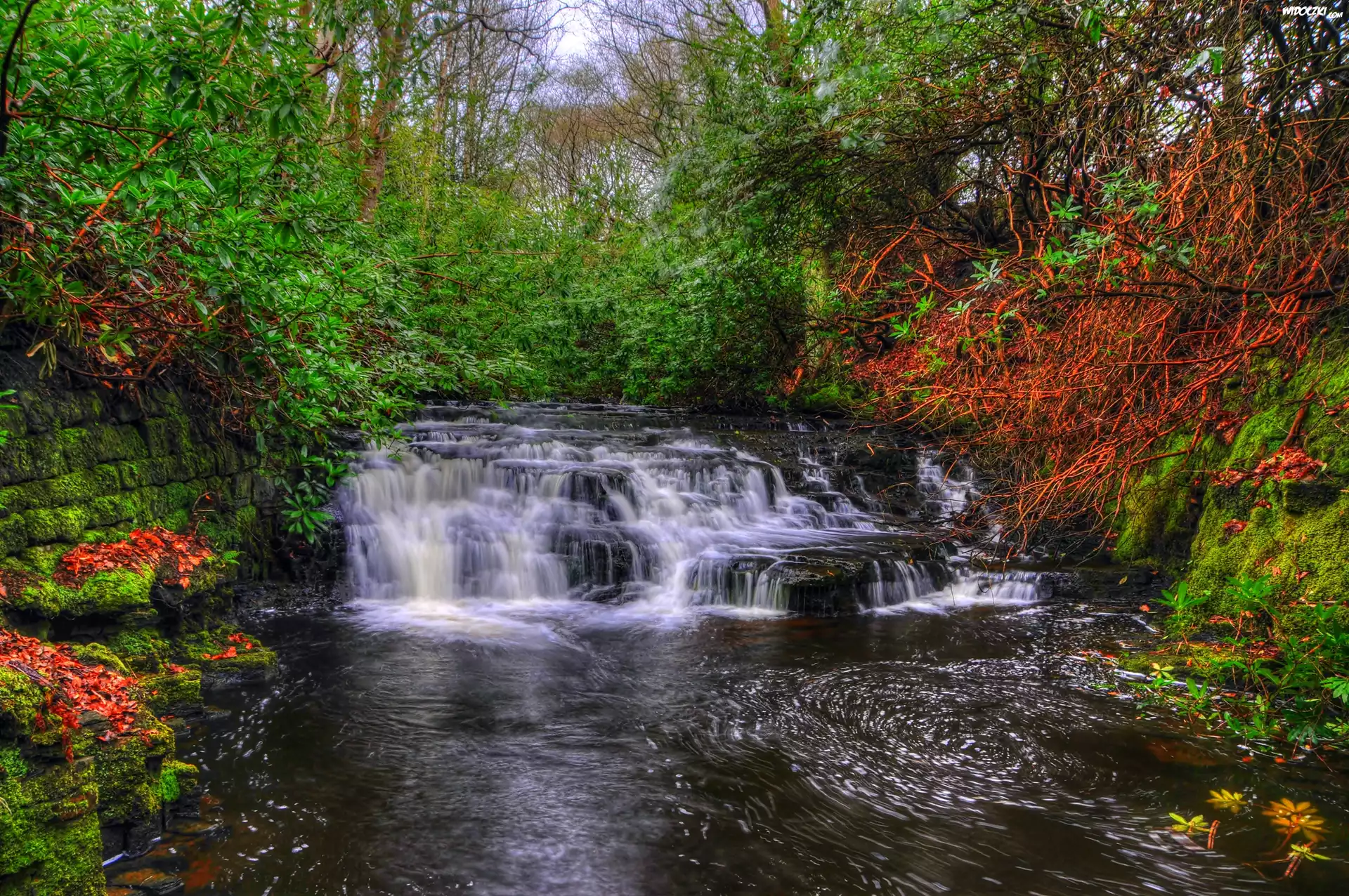 Anglia, Hrabstwo Lancashire, Wodospad, Kaskada, Drzewa, Krzewy