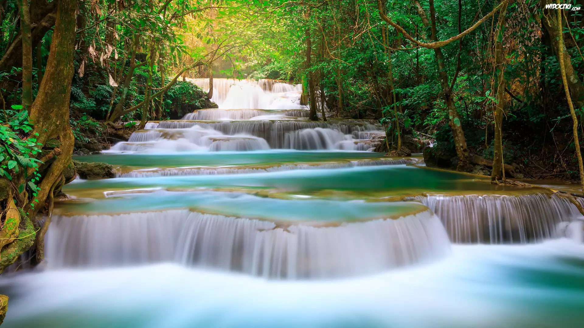 Wodospad, Huai Mae Khamin Waterfall, Kanchanaburi, Tajlandia