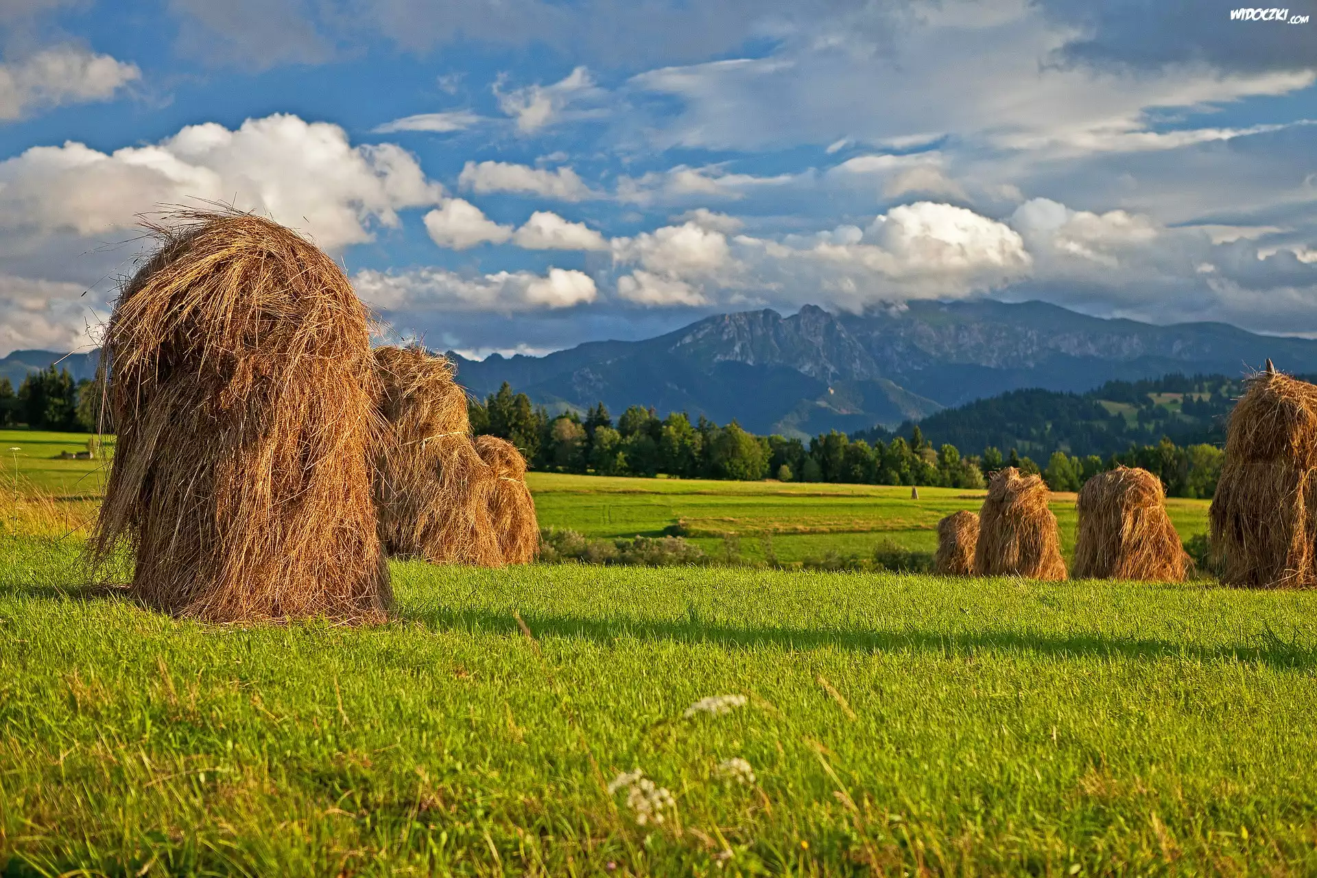 Łąka, Farmy i pola, Snopki, Siano, Słoneczny, Blask, Podhale, Góry, Tatry, Polska