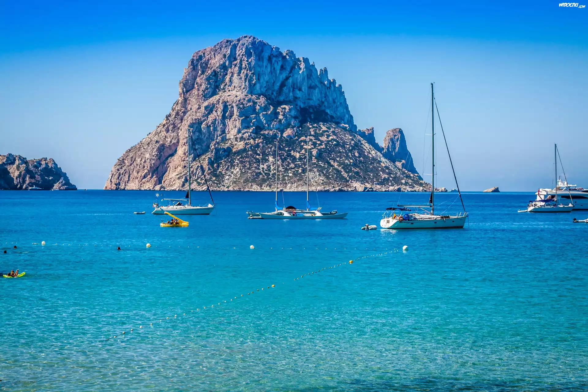 Ibiza, Hiszpania, Morze, Skały, Łódki
