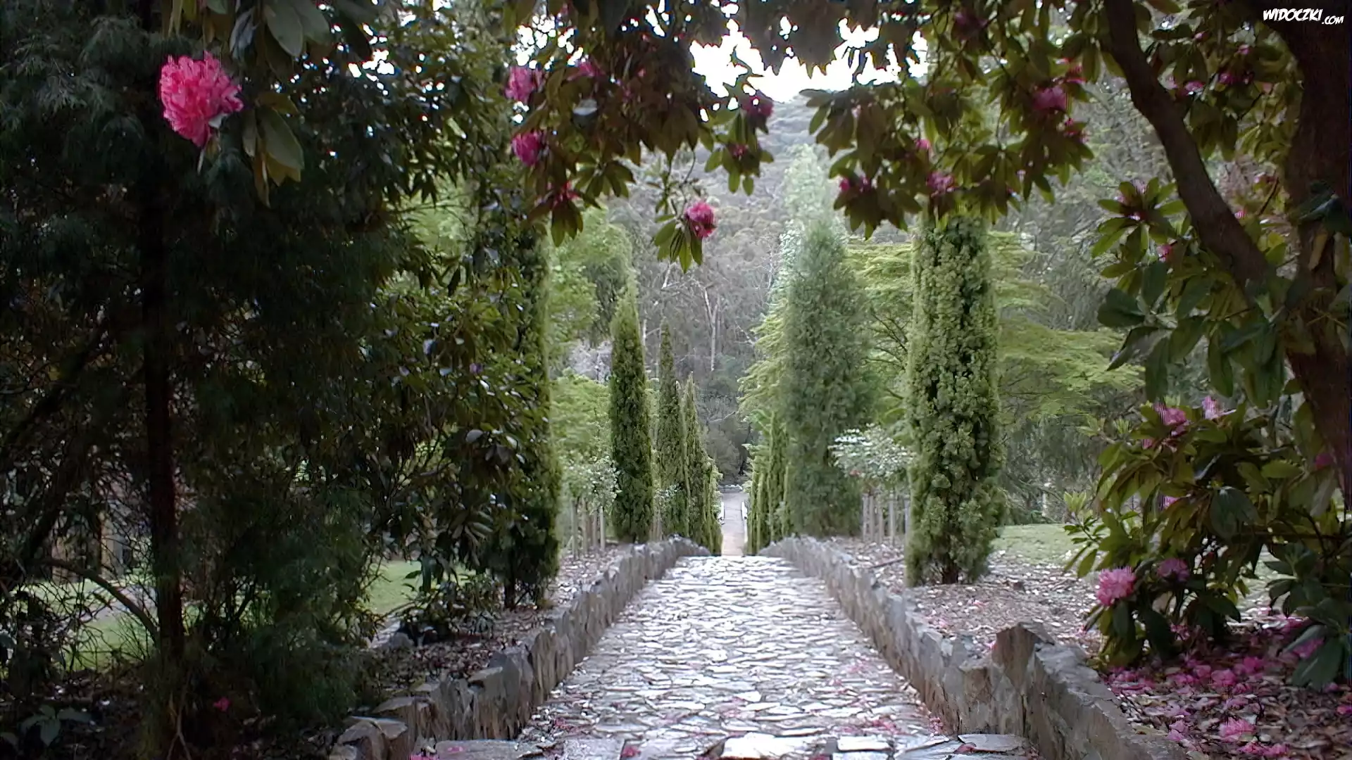Zdjęcia, Iglaki, Kwitnące, Drzewo, Kamienne, Schody