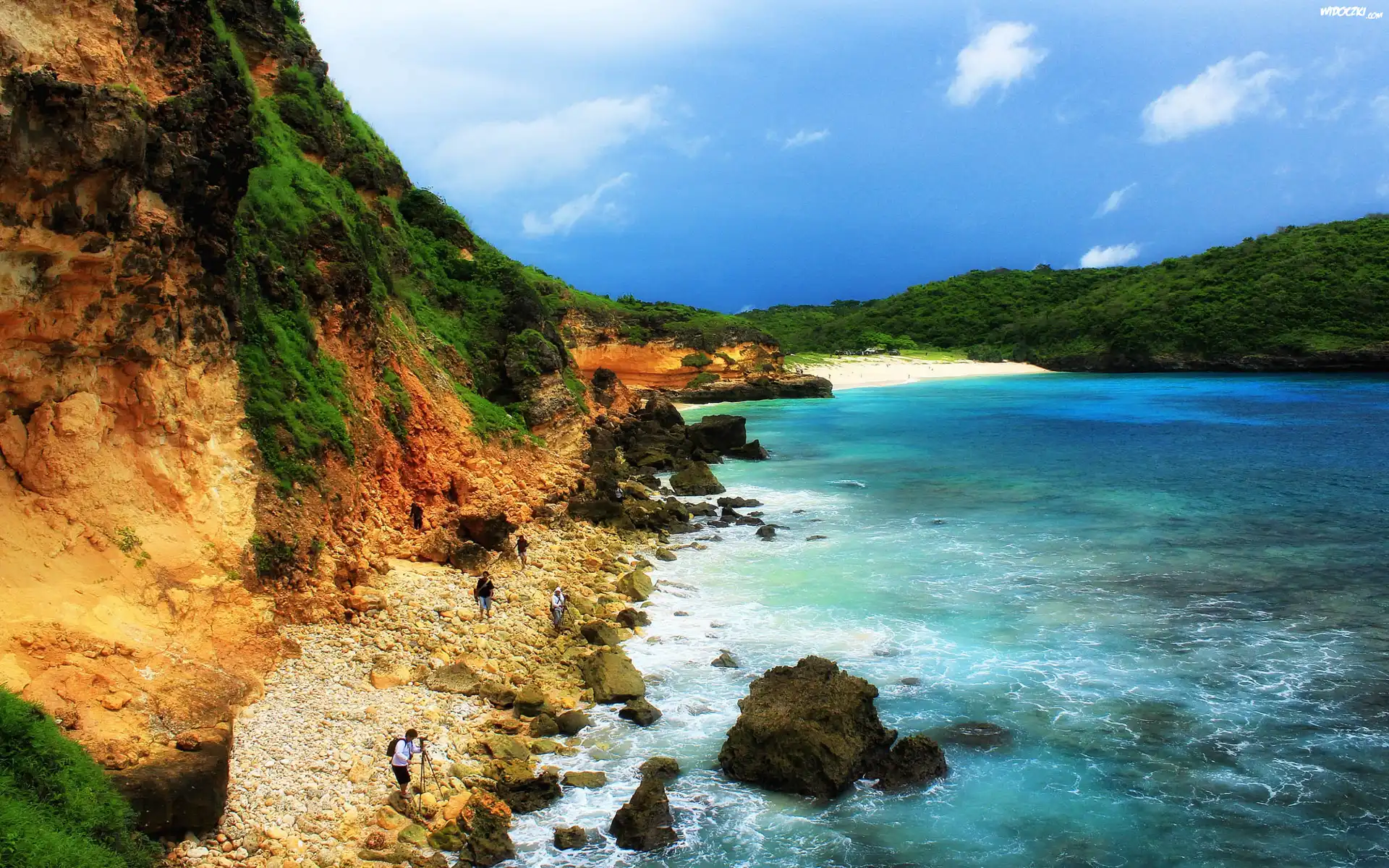 Zdjęcia, Indonezja, Skarpa, Morze, Kamienie, Lasy, Turyści
