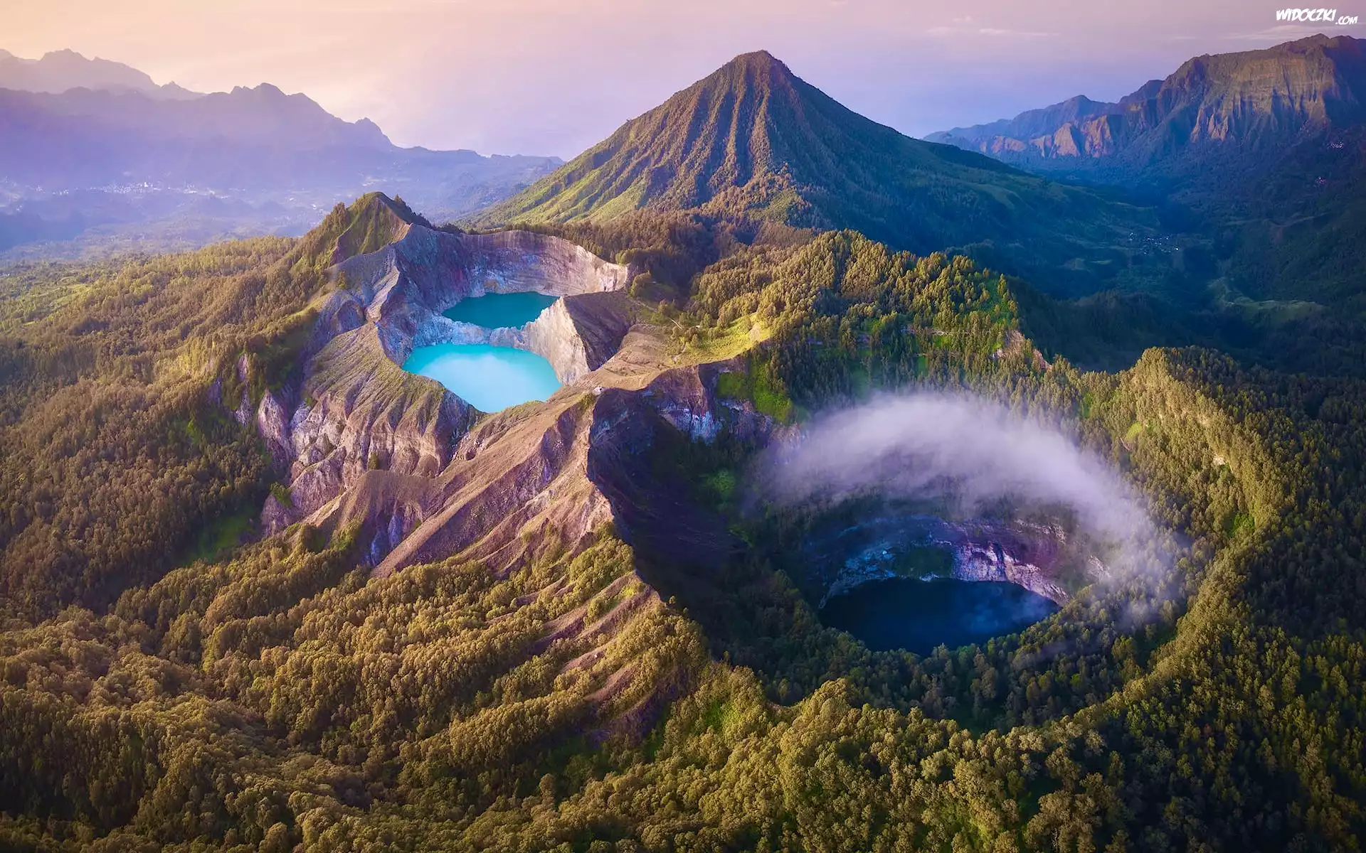 Indonezja, Wyspa, Flores Island, Wulkan, Kelimutu, Jeziora, Krater, Mgła, Góry
