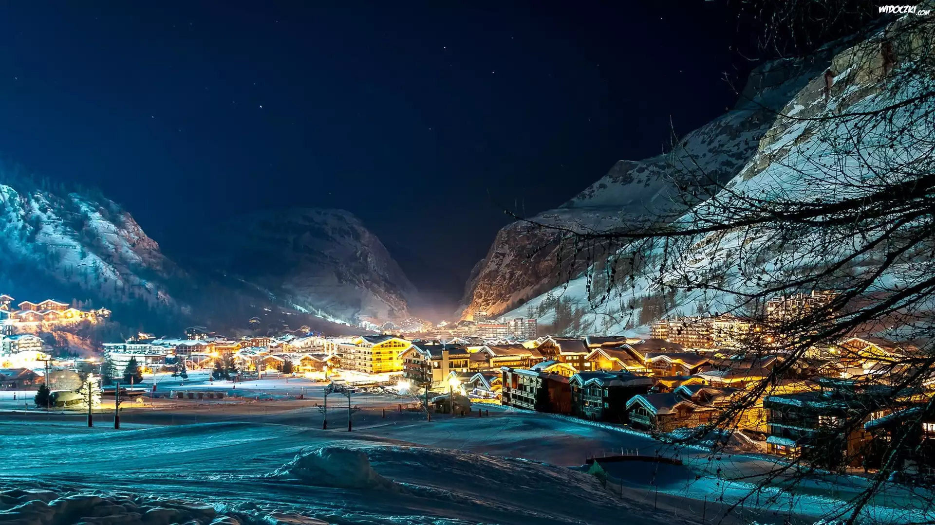 Miasteczko, Isere, Valley, Ośrodek, Narciarski, Alpy, Francuskie, Zima