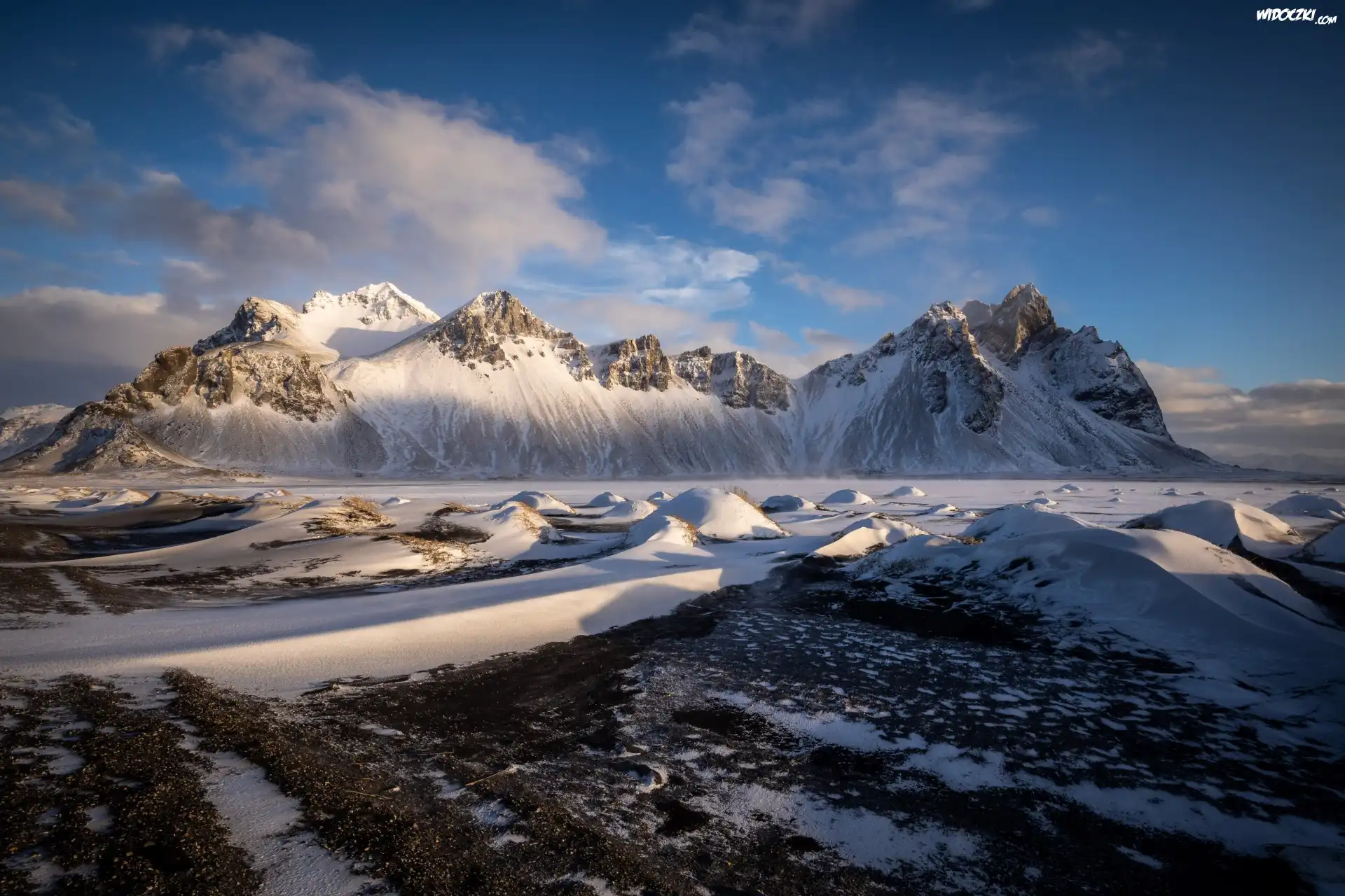 Zdjęcia, Islandia, Śnieg, Zima, Góra Vestrahorn