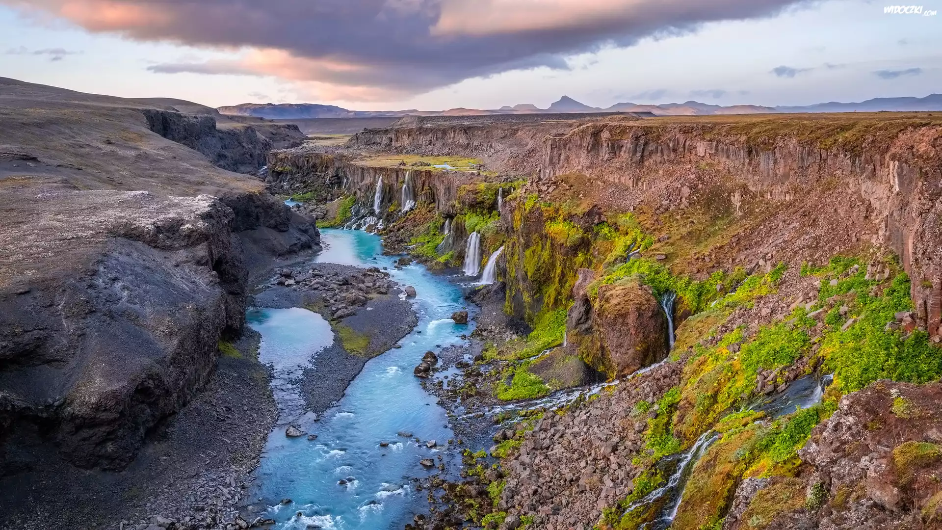 Kanion, Sigoldugljufur, Wodospady, Islandia