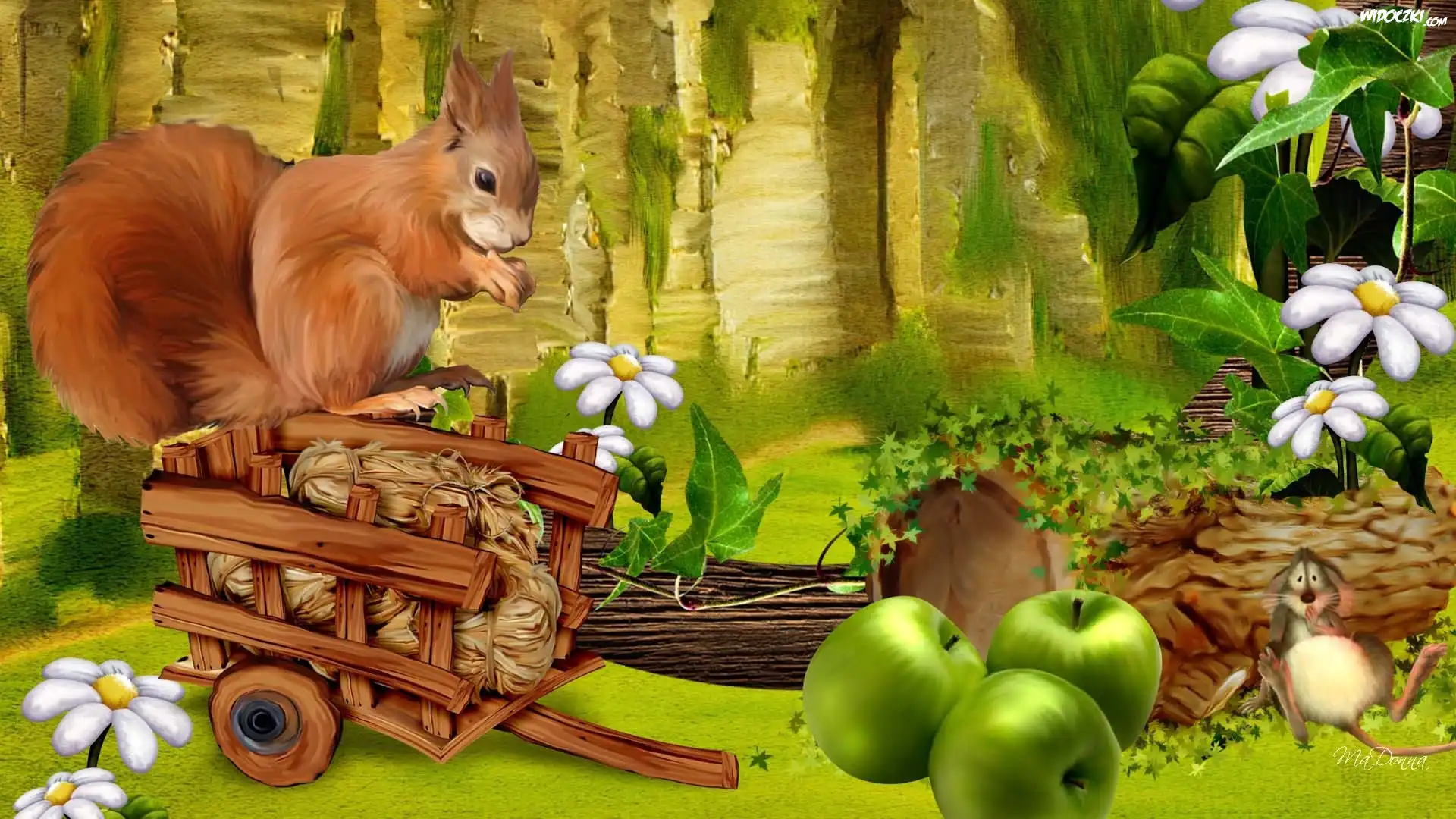 Zdjęcia, Wiewiórka, Jabłka, Las