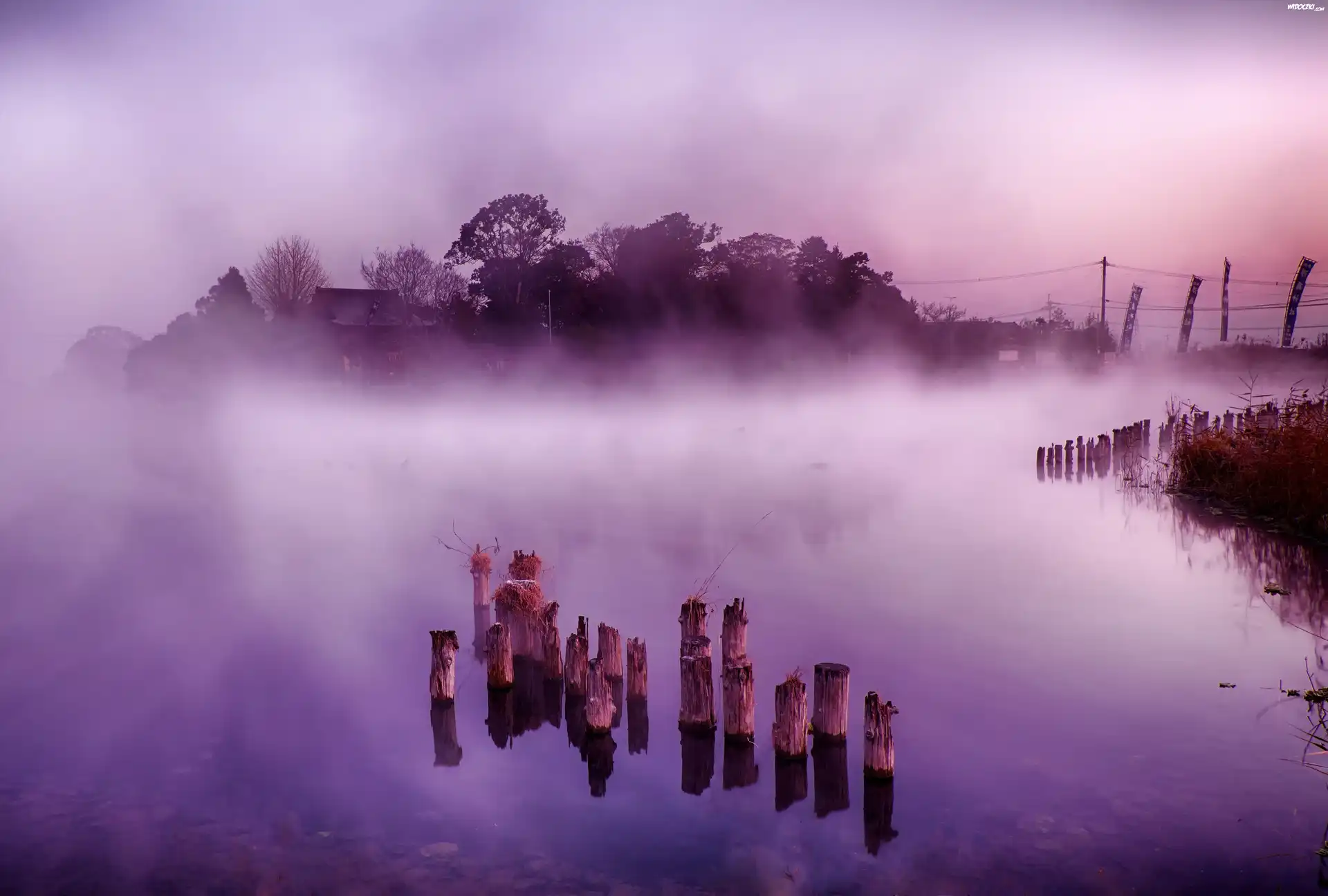 Japonia, Pływająca, Wyspa, Mgła, Jezioro, Świt