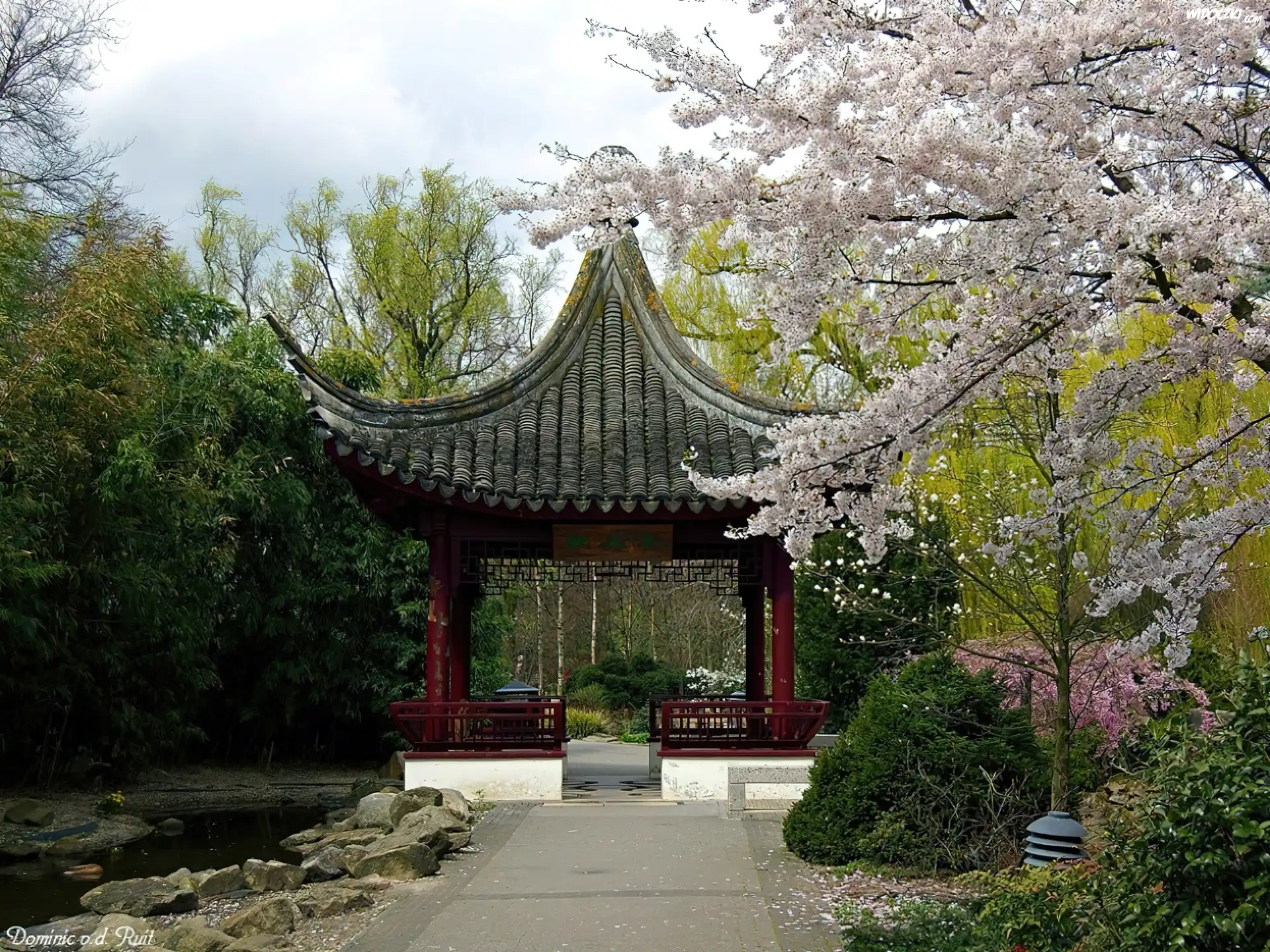 Zdjęcia, Japoński, Ogród, Kwitnące, Drzewa