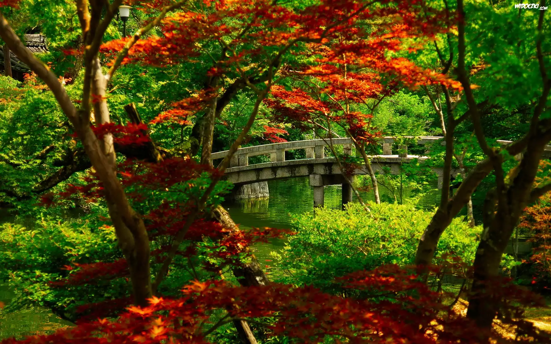 Zdjęcia, Japoński, Ogród, Most, Rzeczka