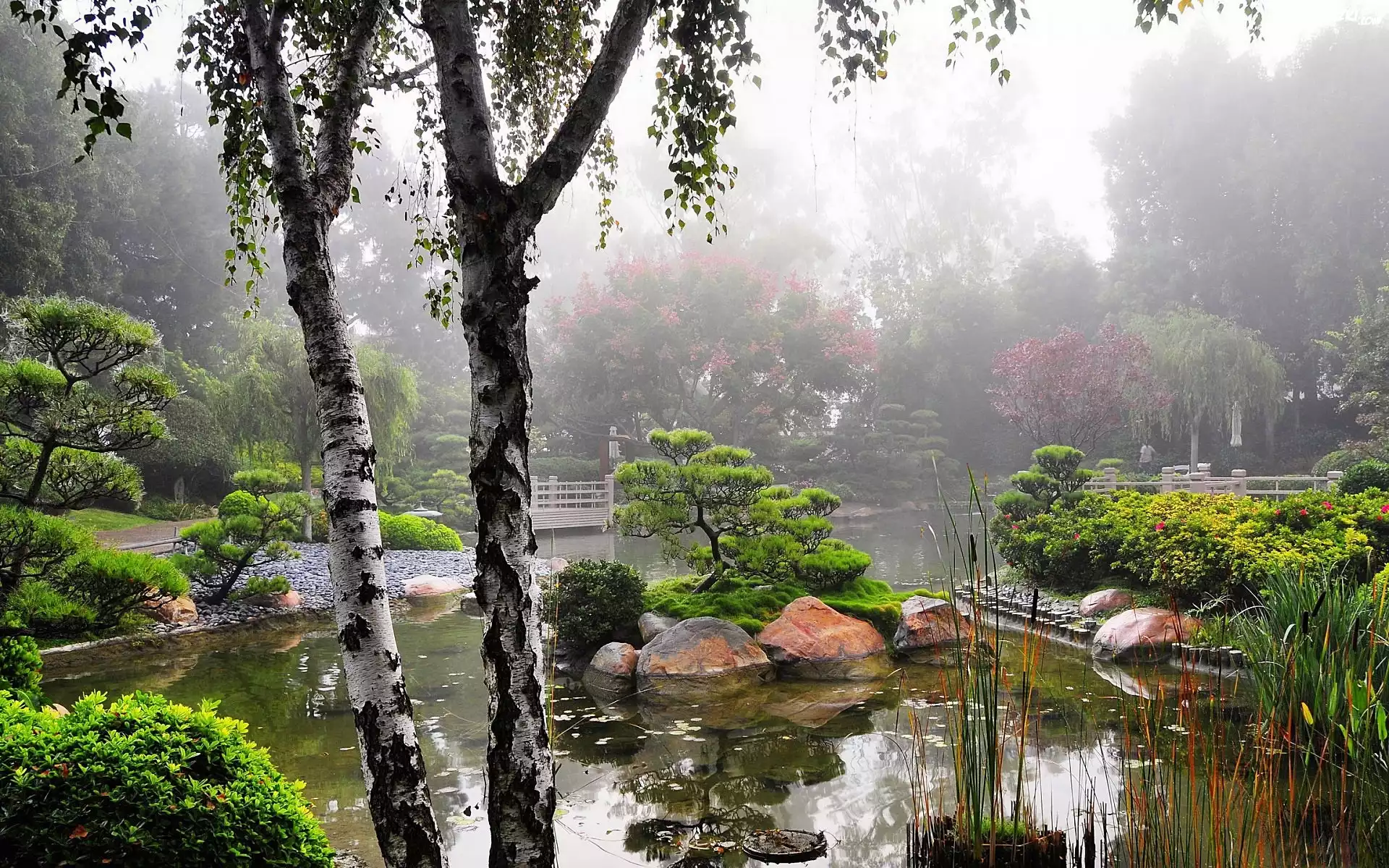 Zdjęcia, Japoński, Ogród, Poranek, Mgła