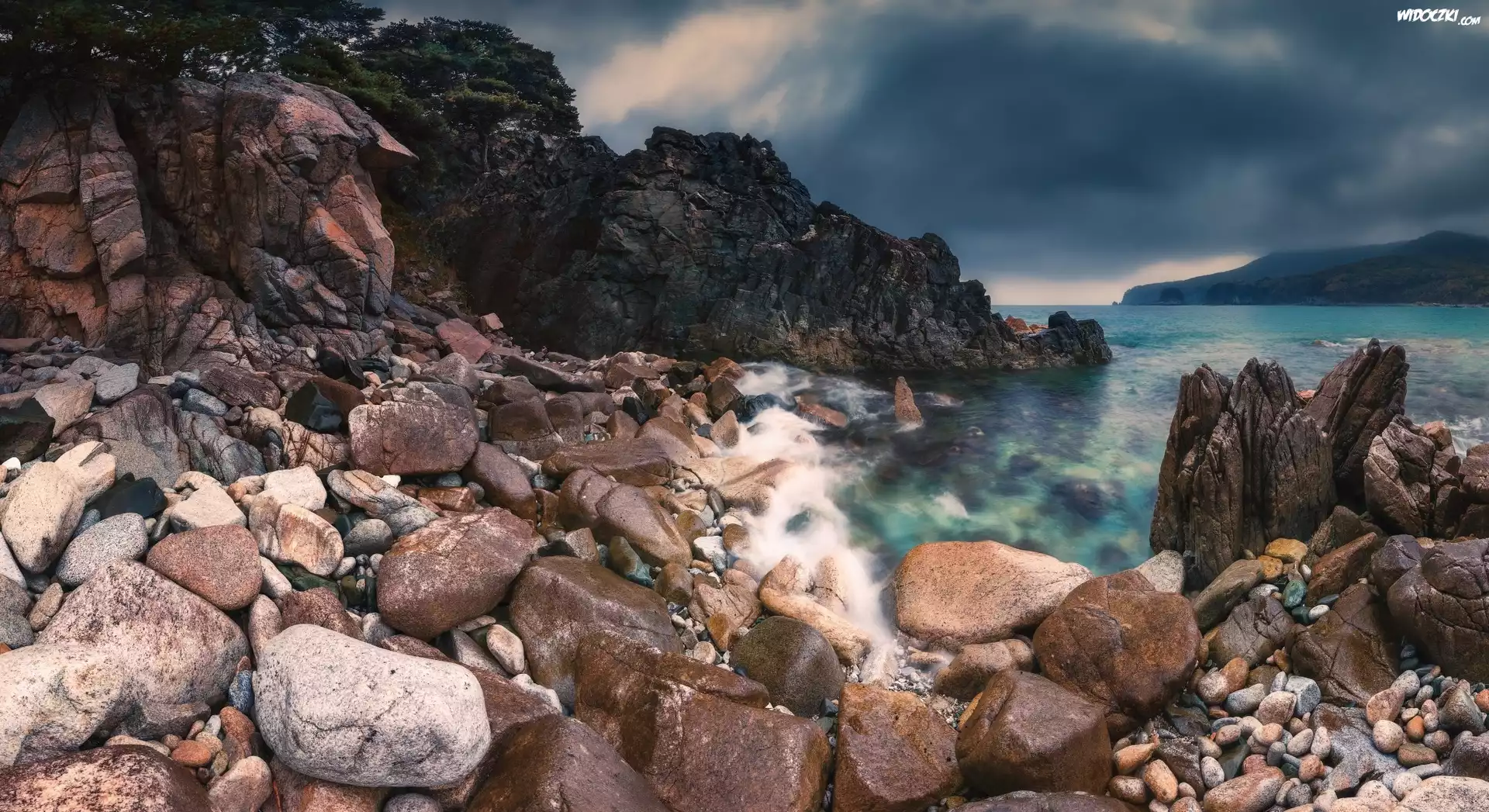 Morze Japońskie, Skały, Kamienie, Ciemne, Chmury, Rosja