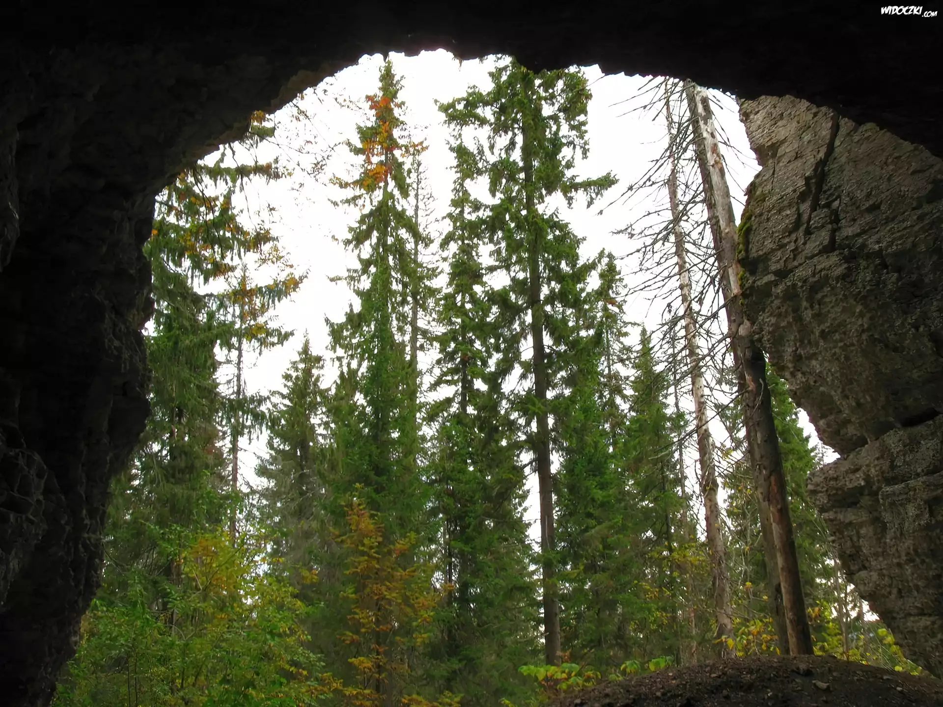 Zdjęcia, Drzewa, Jaskinia, Skały