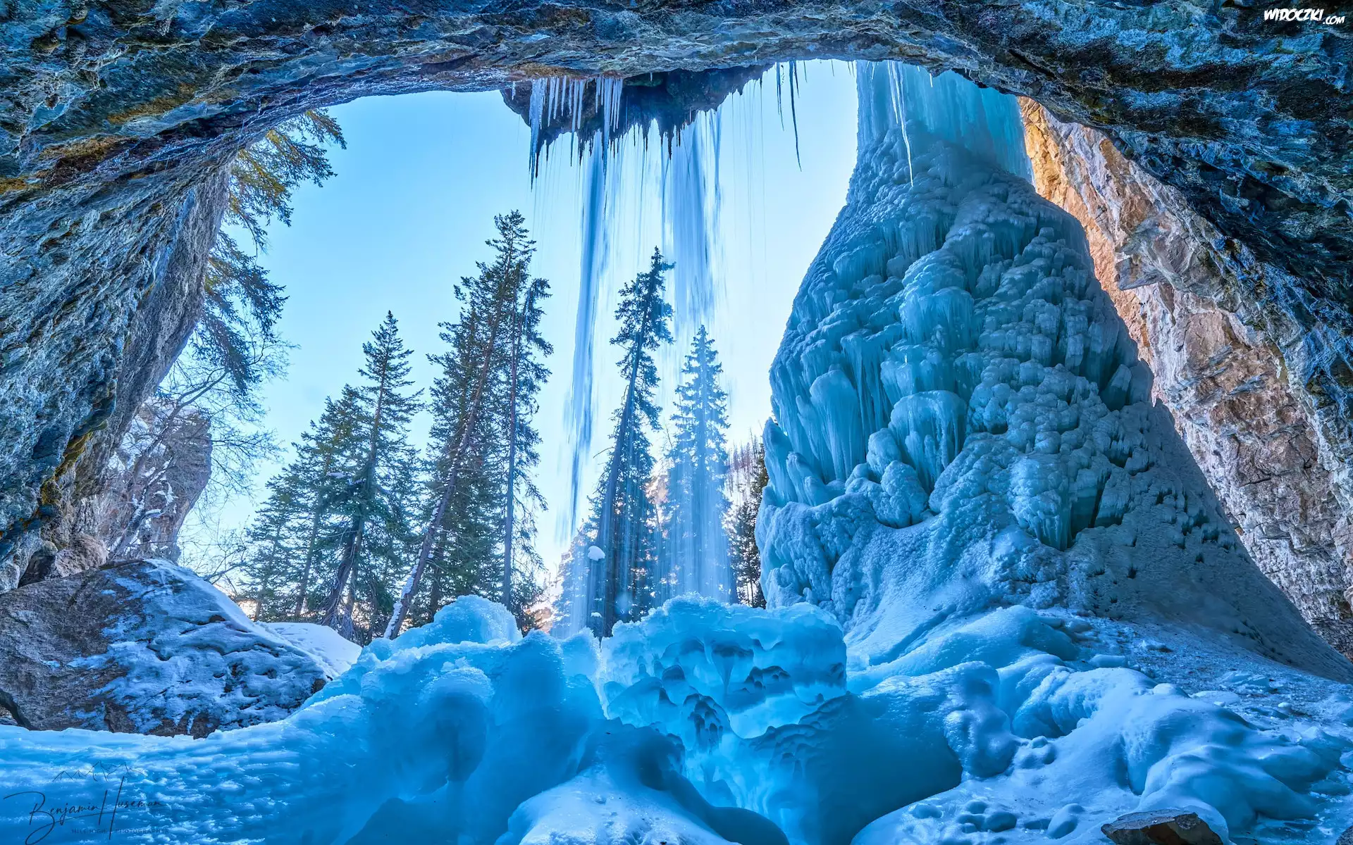 Zdjęcia, Stany Zjednoczone, Kolorado, Jaskinia, Sople, Drzewa, Zima