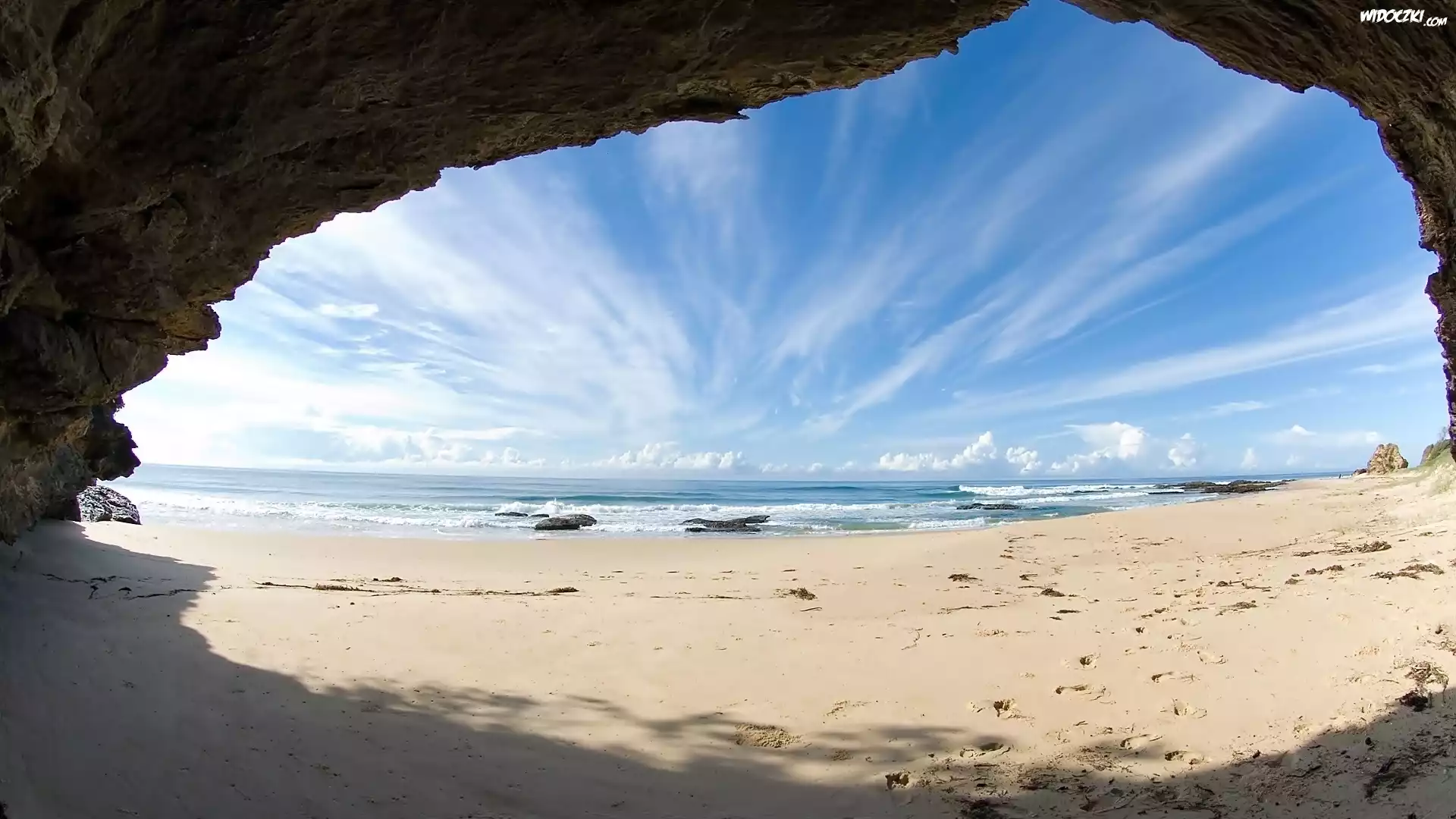 Zdjęcia, Jaskinia, Piasek, Woda, Morze, Lato